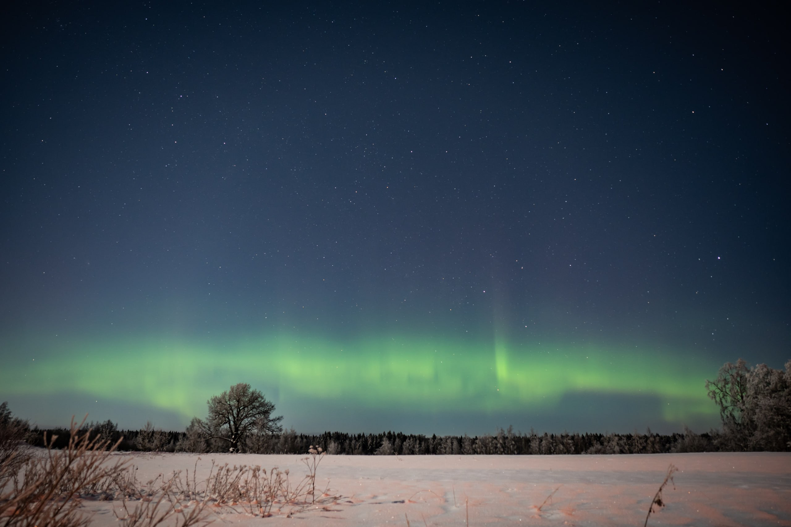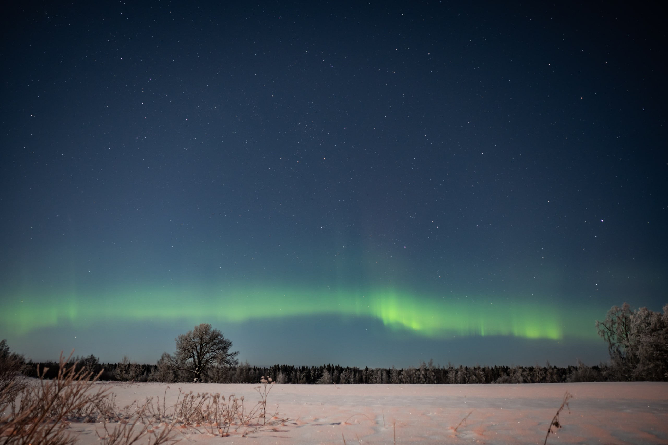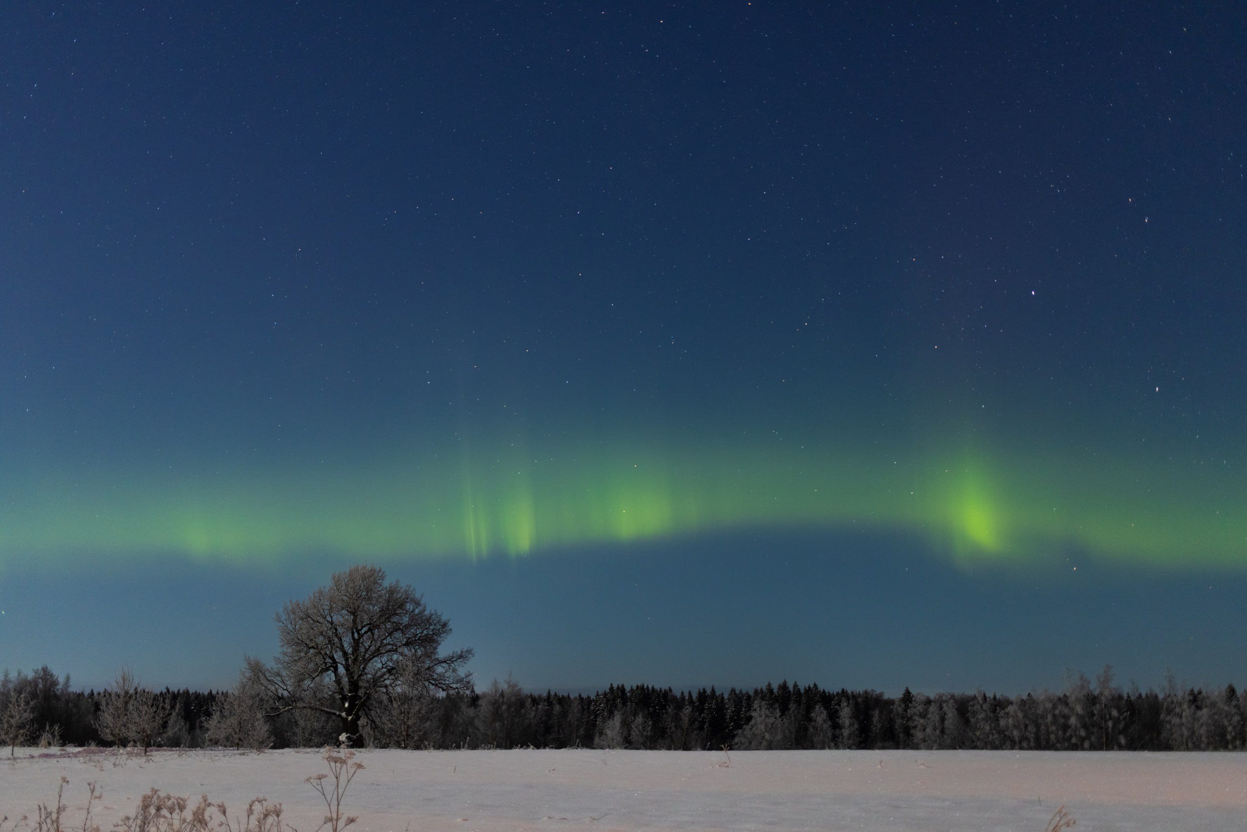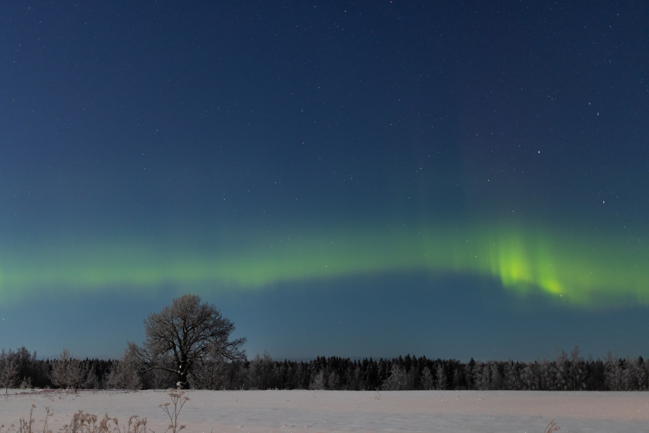 Над Ириновским дубом в Ленобласти запечатлели северное сияние