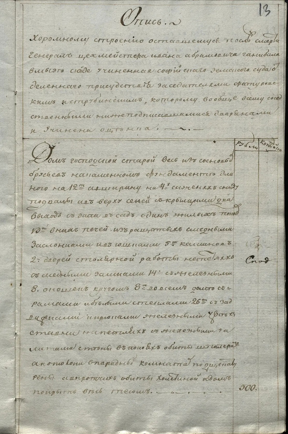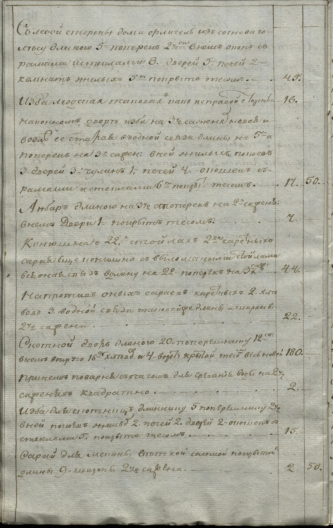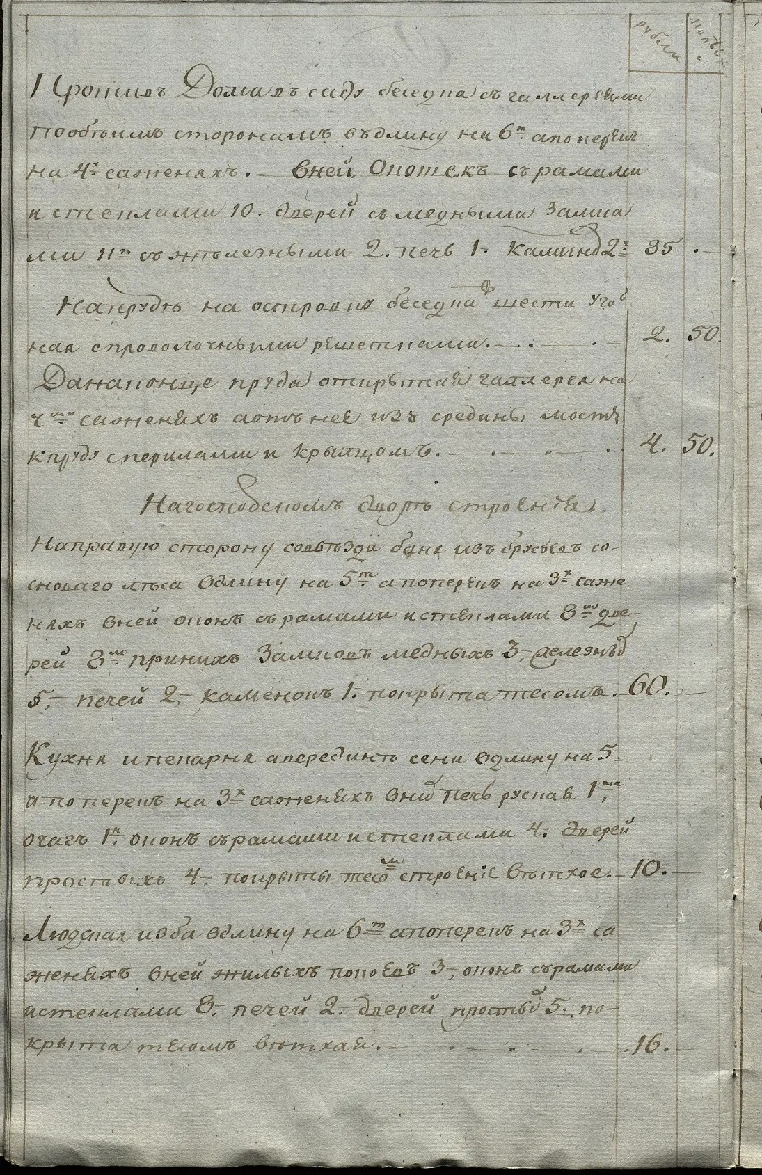 В найденных материалах содержится подробная опись господского дома, утраченного в конце XIX века. Документ позволяет восстановить его внешний вид и внутреннее устройство: известно, сколько в здании было печей, каминов, окон и дверей, а также как были оформлены интерьеры.