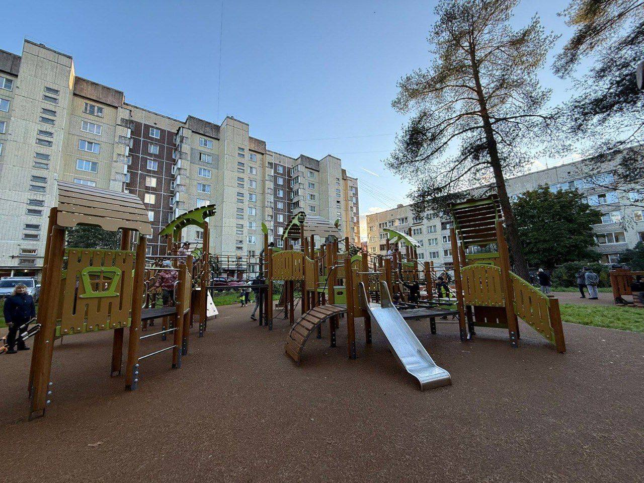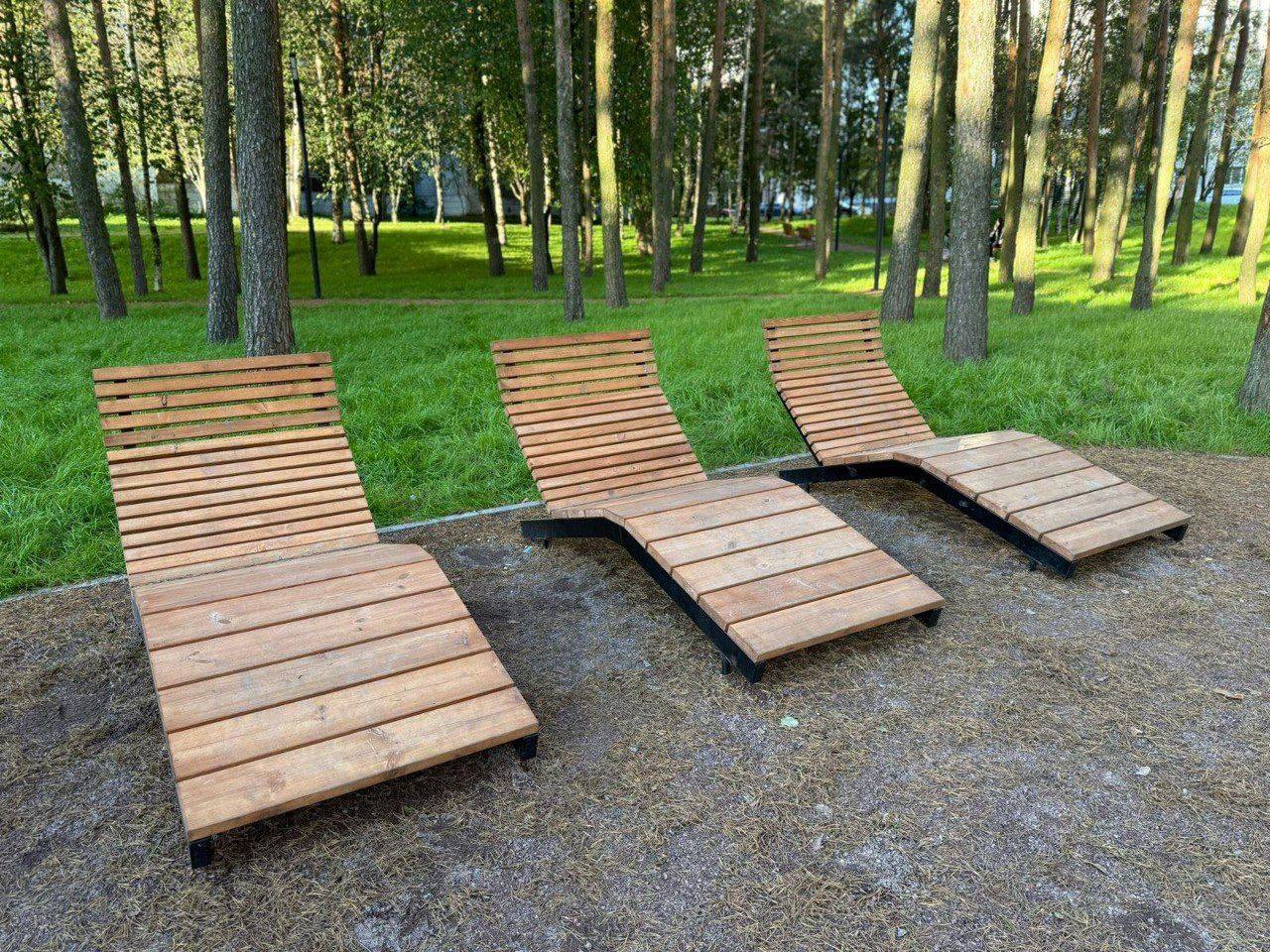 В сосновом парке Всеволожска открыли новую площадку с игровым городском, скамейками, шезлонгами и современным освещением.