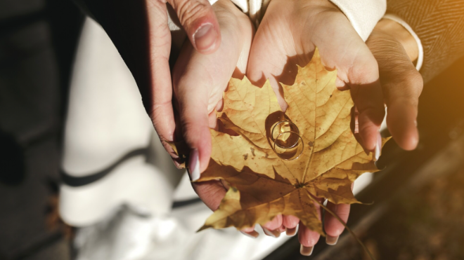 Фото: https://ru.freepik.com/free-photo/hands-holding-dry-leaf-with-two-wedding-rings_983256.htm#