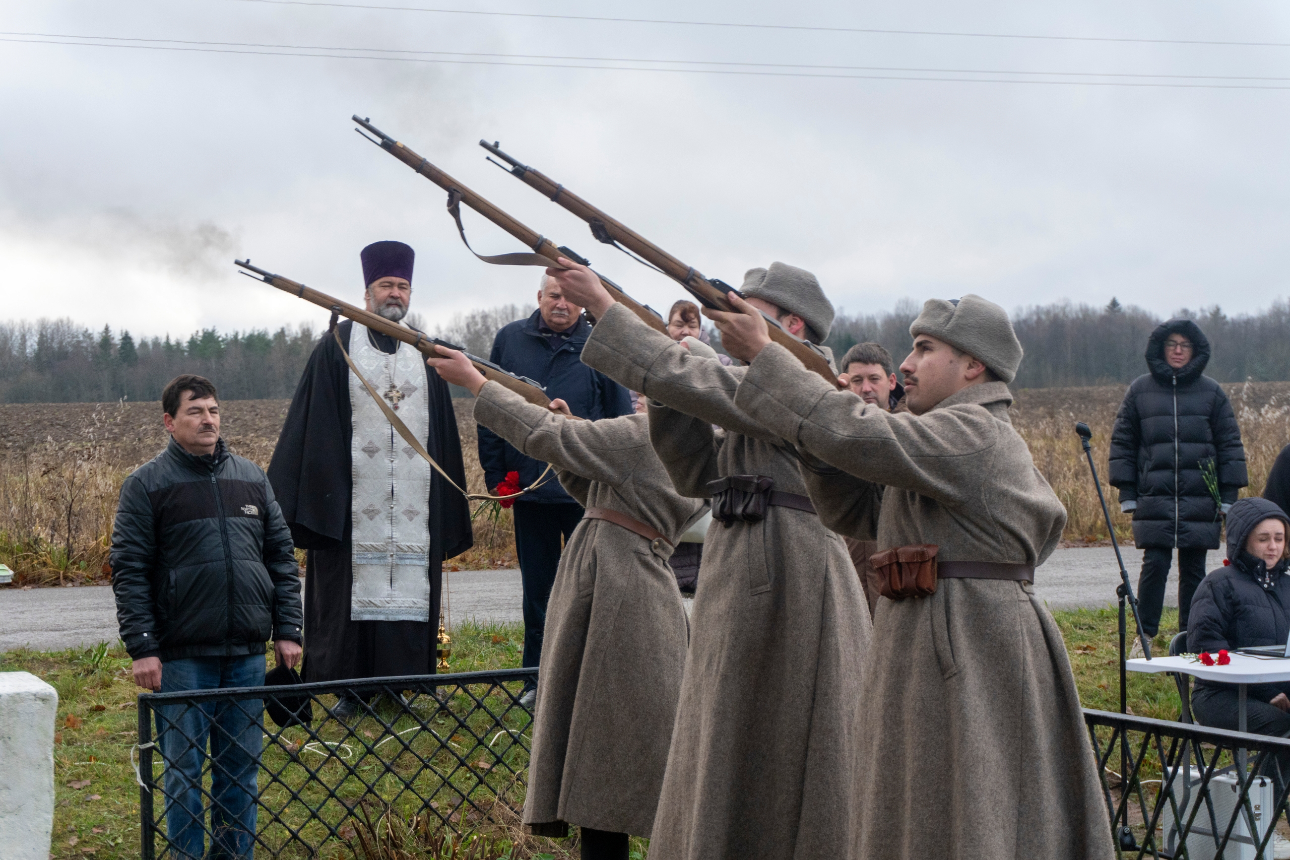 В торжественно-траурной церемонии приняли участие представители Комитета по молодежной политики Ленобласти и администрации Лопухинского поселения. Проститься с бойцами также пришли местные жители, ветераны и поисковики.