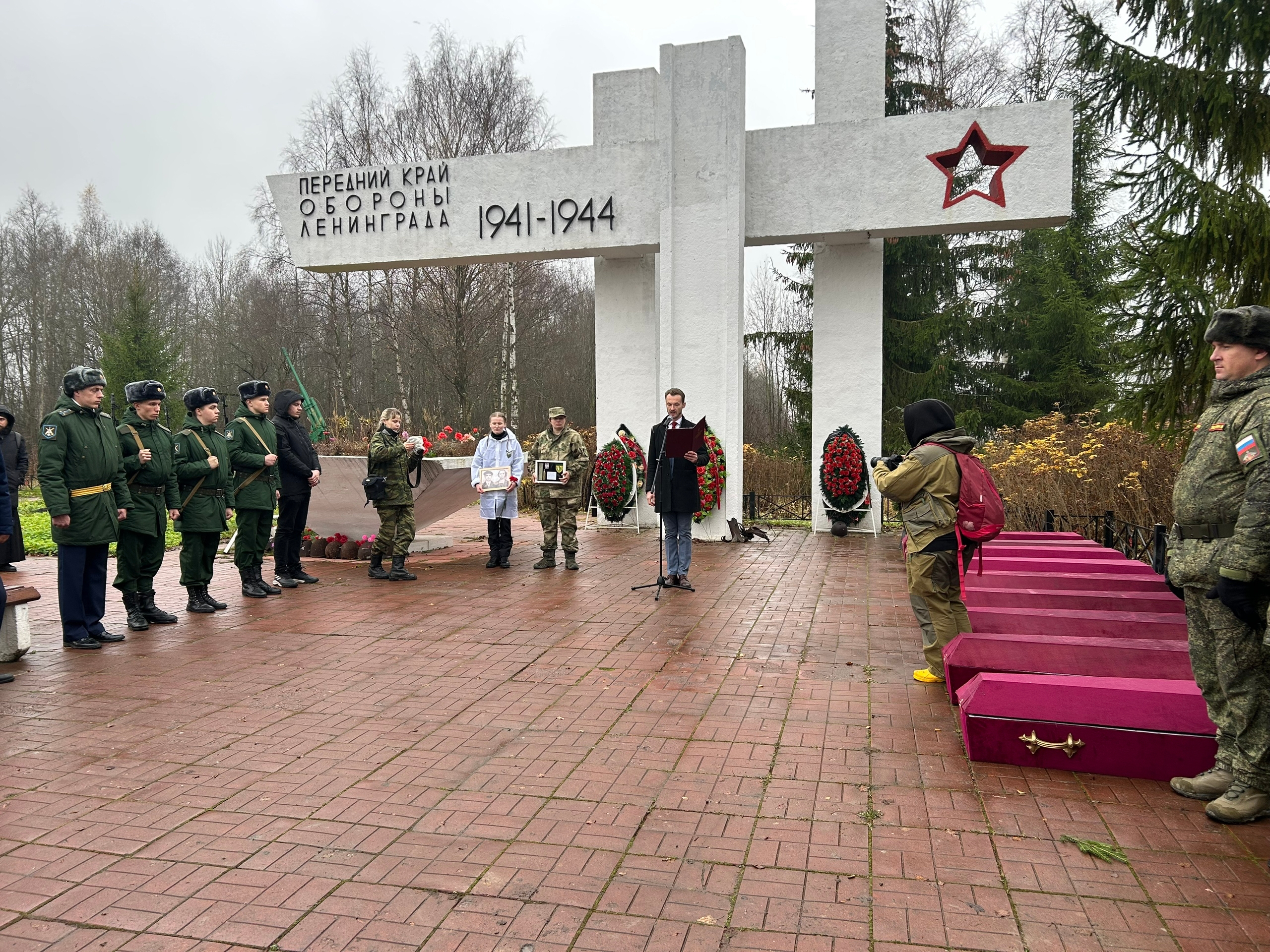 Останки воинов Красной Армии предали земле у мемориала «Ижорский таран»