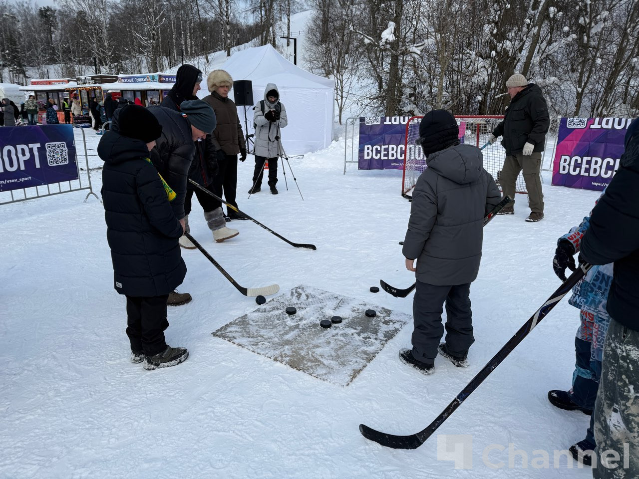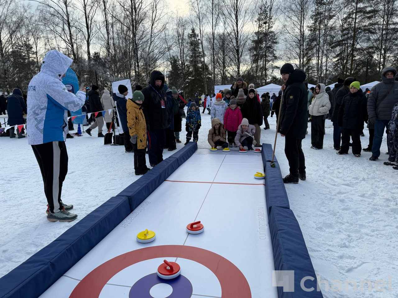 В ожидании начала спортивного праздника все желающие могли принять участие в игровой спортивной программе «Зимние забавы»: мастер-классы по фигурному катанию, футболу на снегу. Спортсмены и их представители могут попробовать свои силы в подготовленных эстафетах по кёрлингу, биатлону и лыжных гонках.