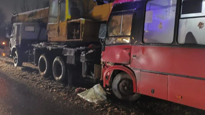 Пассажирский автобус столкнулся с КАМАЗом в Ленобласти
