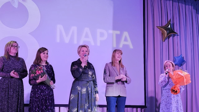 Заместитель главы администрации Андрей Нилов сказал женщинам теплые слова и пожелал им благополучия, любви и улыбок. Педагогам преподнесли приятный подарок в виде цветов, которые сразу подняли настроение.