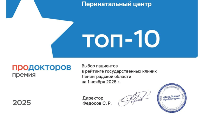 Перинатальный центр попал в топ-10 госклиник Ленобласти премии ПроДокторов