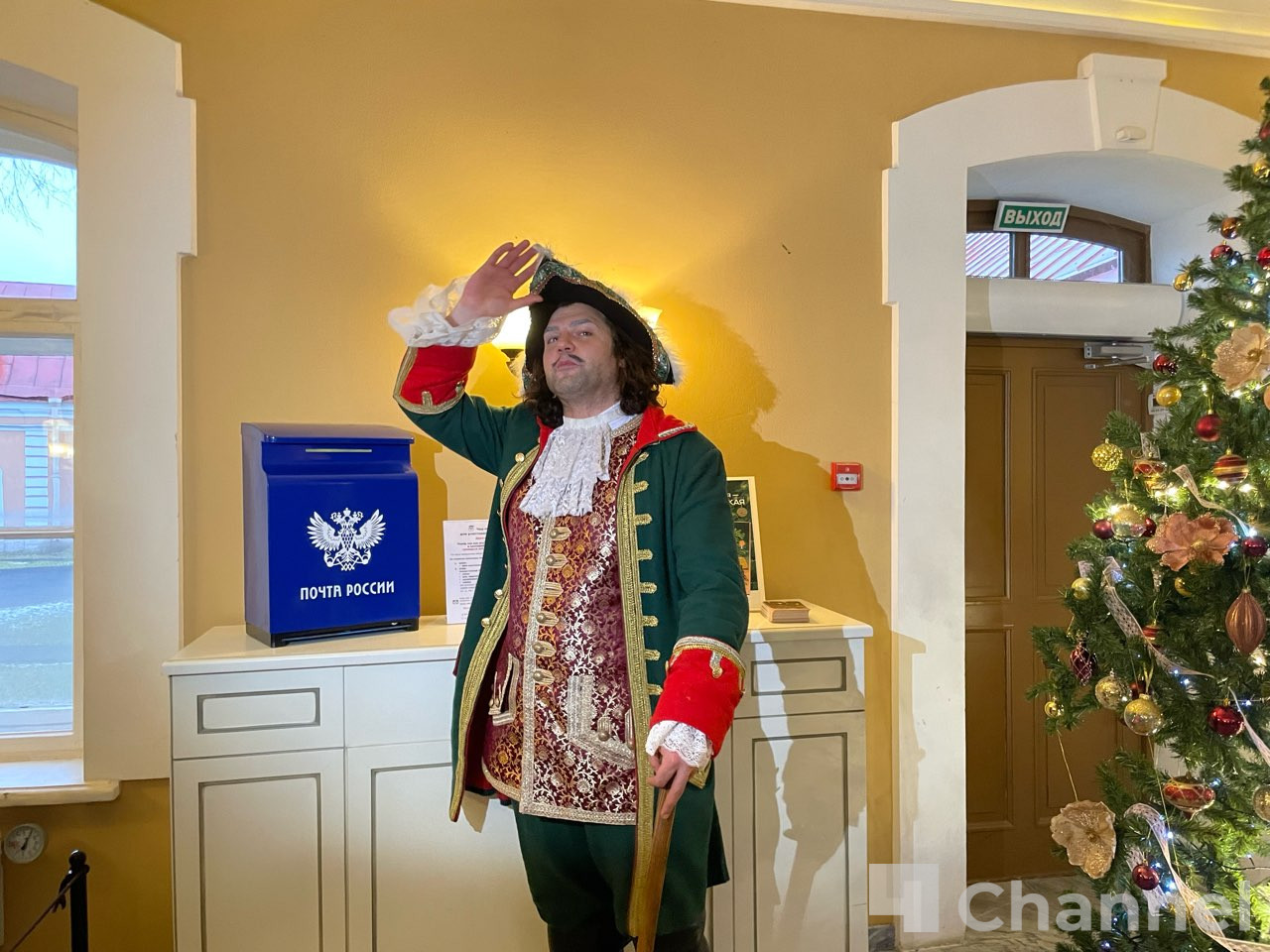 Петр Первый поздравляет гостей в Петропавловской крепости и помогает отправить открытку