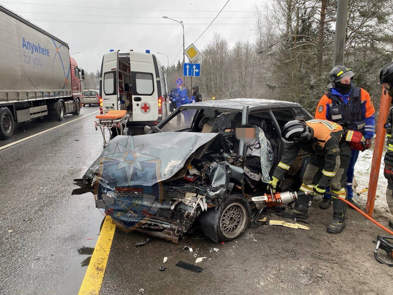 Фото с места ДТП публикует Аварийно-спасательная служба Ленинградской области.