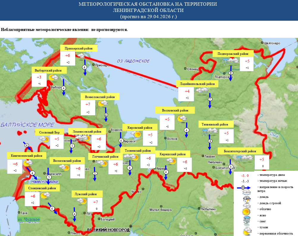 В среду, 29 апреля, в Ленинградской области прогнозируется облачность с прояснениями. Местами пройдут кратковременные осадки - мокрый снег и дожди.