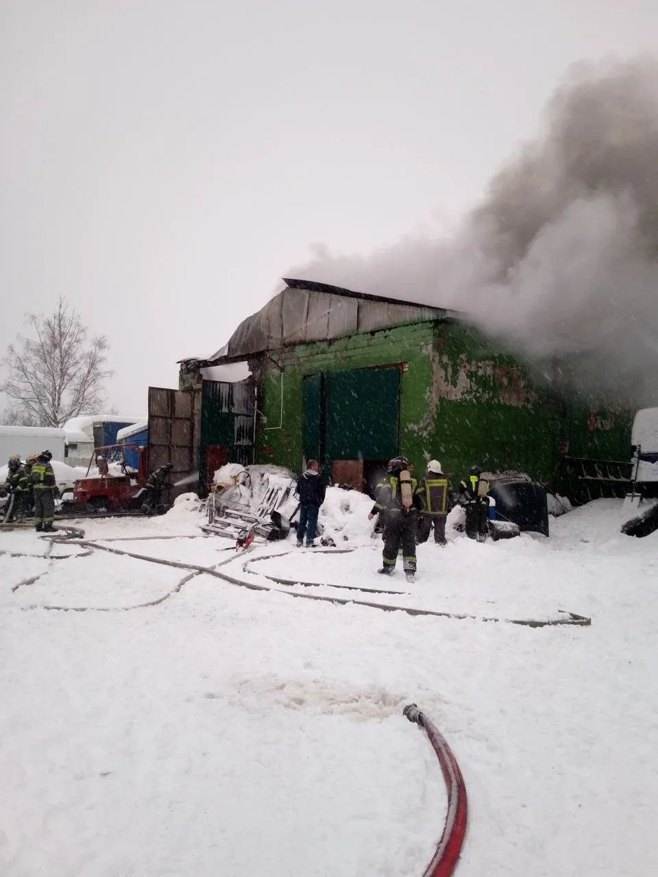 Появилось видео с места пожара на складе в Кировске