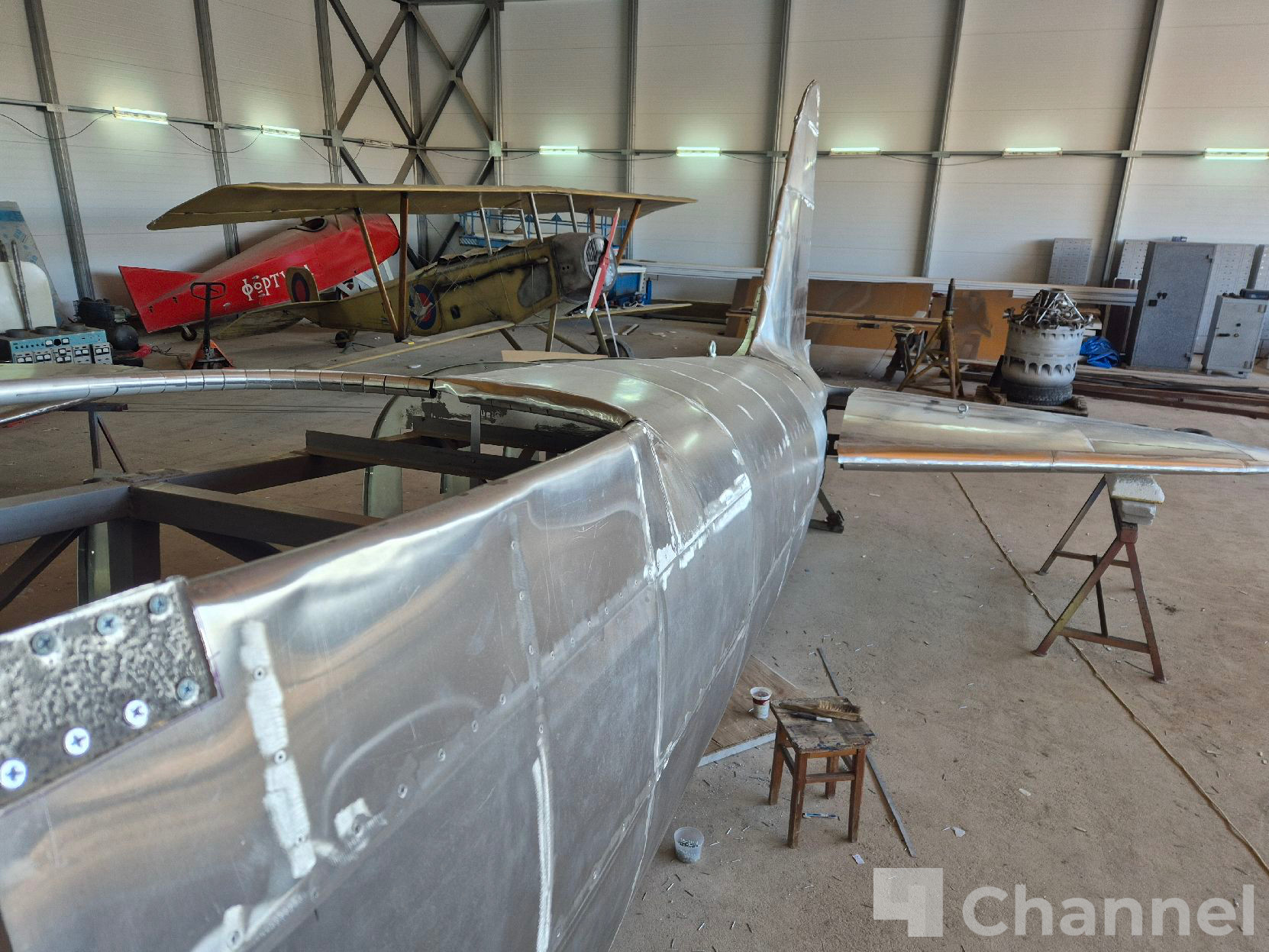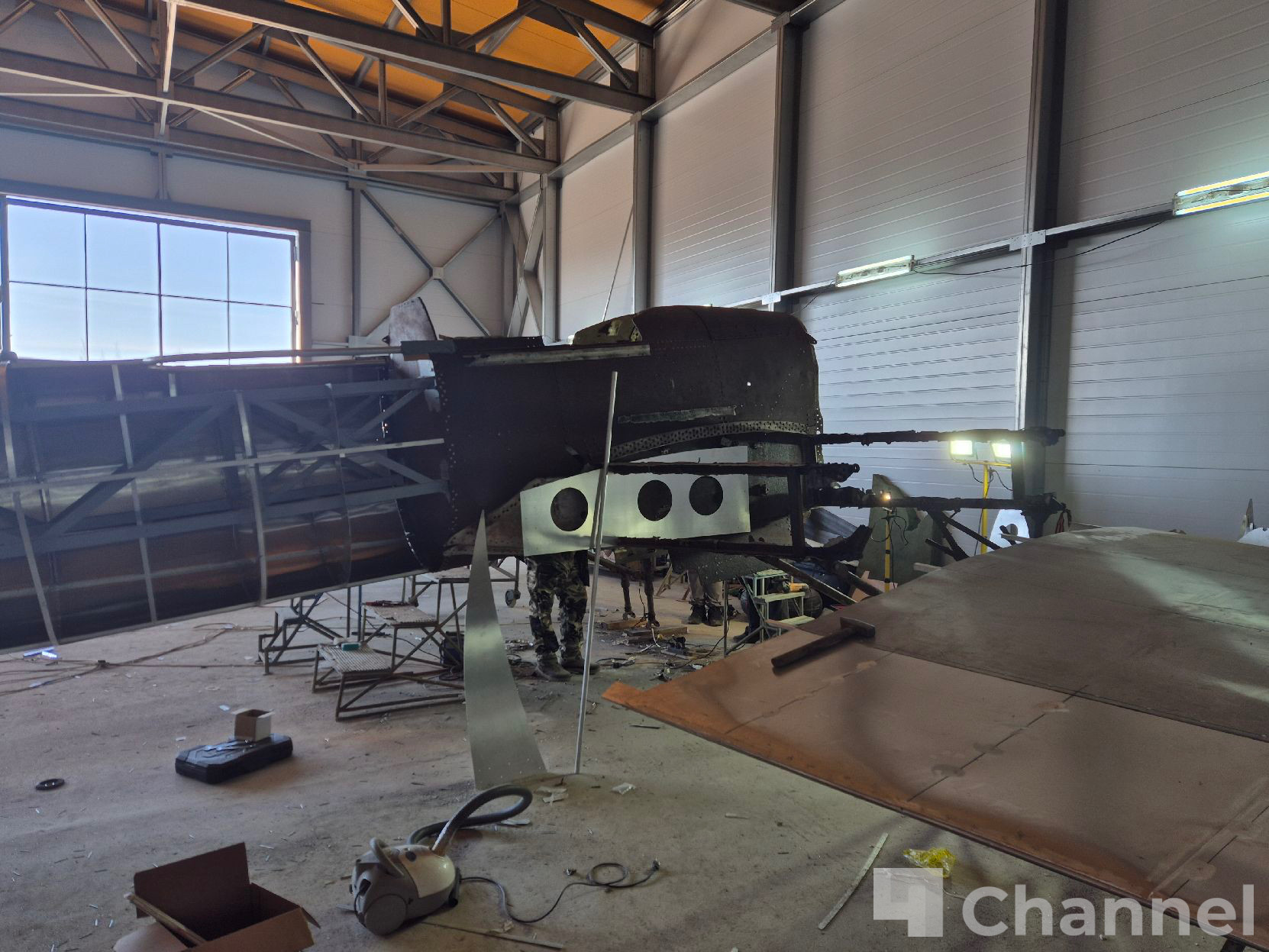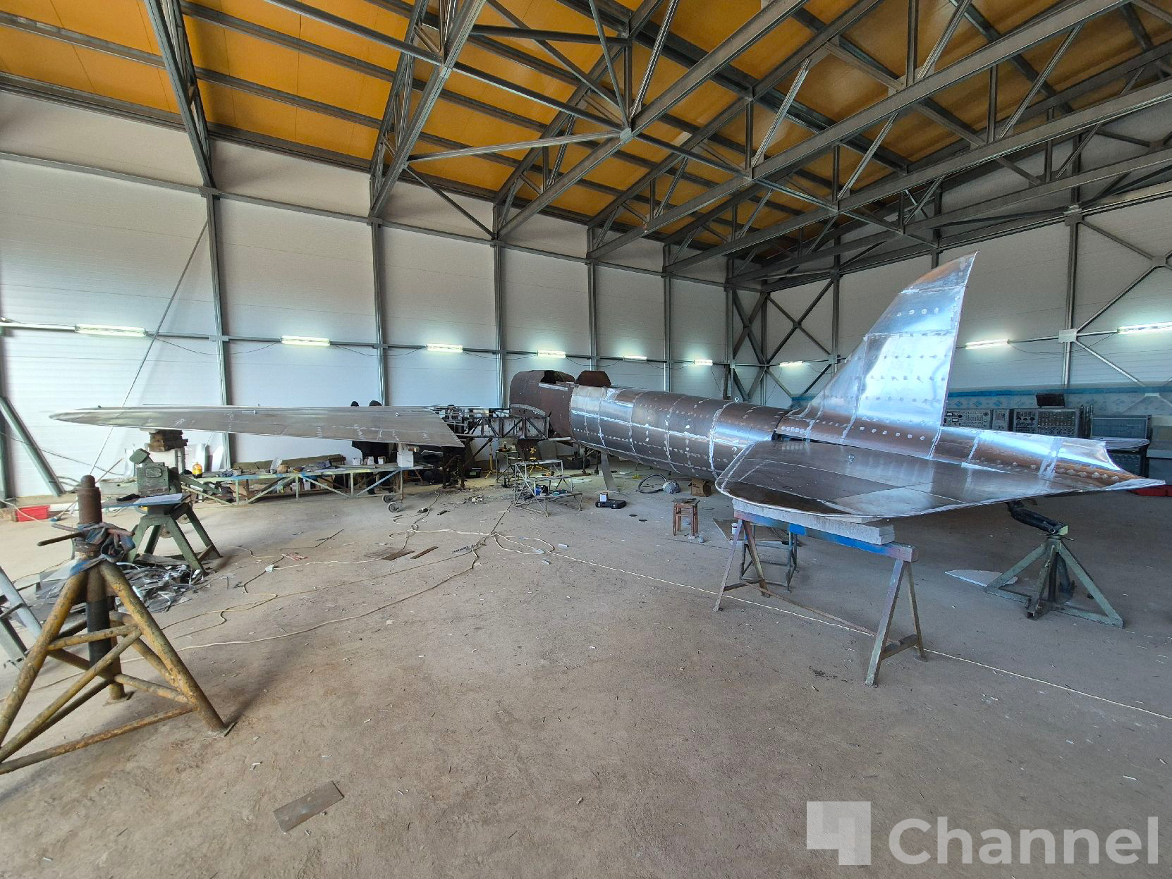 Специалисты уже пристыковали левое крыло, смонтировали обшивку хвостовой части фюзеляжа и приступили к усилению центроплана крыла. Аналогичные работы предстоят по правому борту.