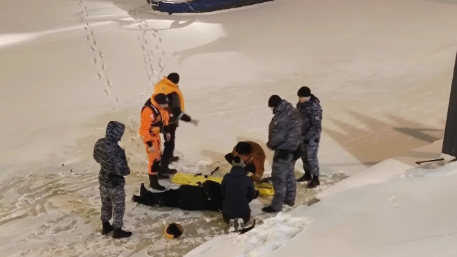 Сотрудники отдела вневедомственной охраны по Петроградскому району незамедлительно направились на место происшествия. Они обнаружили лежащего на льду Кронверкского пролива нетрезвого мужчину. После падения с высоты он получил различные травмы.