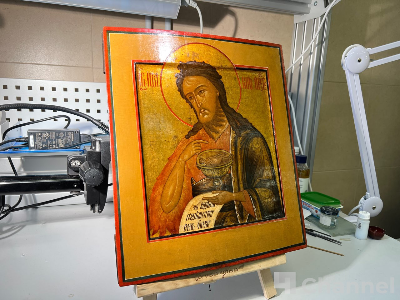 Параллельно в Международном центре реставрации восстанавливают икону «Святой Иоанн Предтеча». На образе не было сильных повреждений - лишь налет времени. Специалистам удалось воссоздать первоначальный вид иконы.