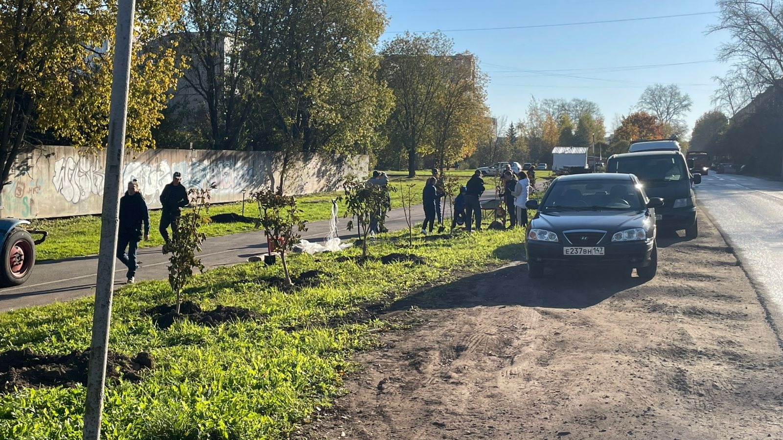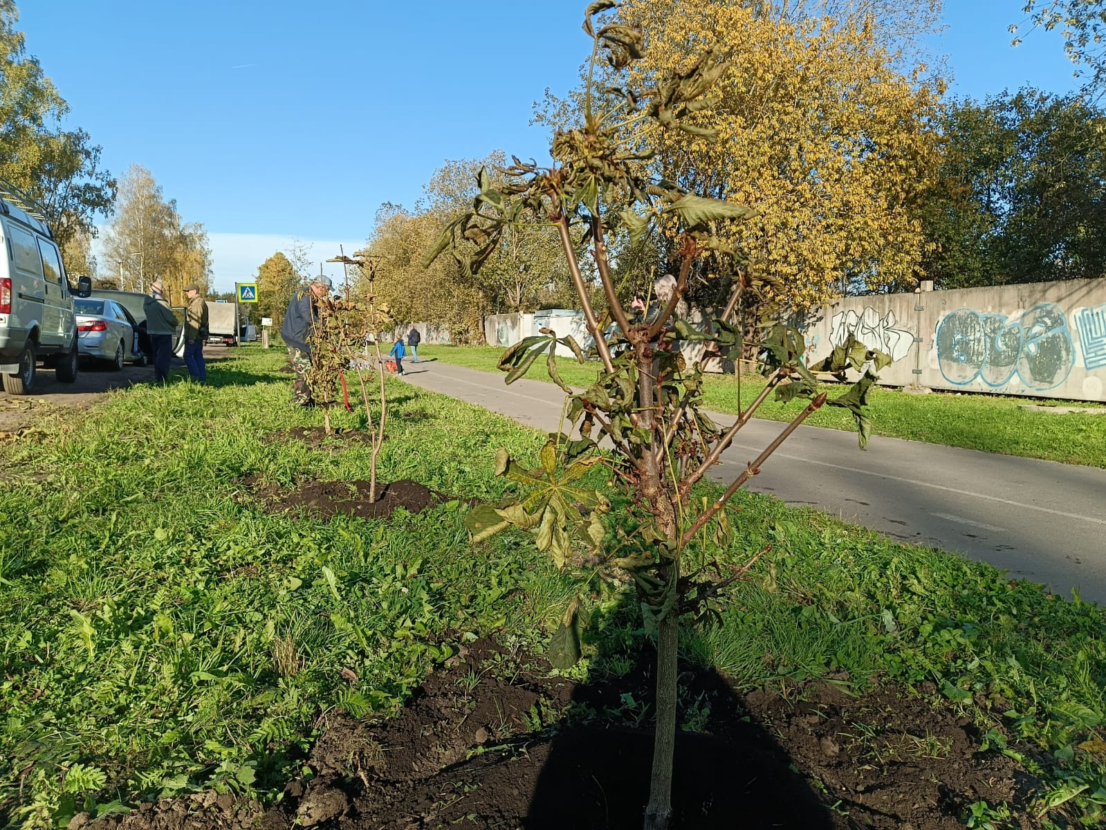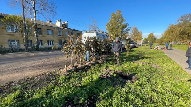 Рощинскую улицу в Гатчине украсили 30 молодых каштанов