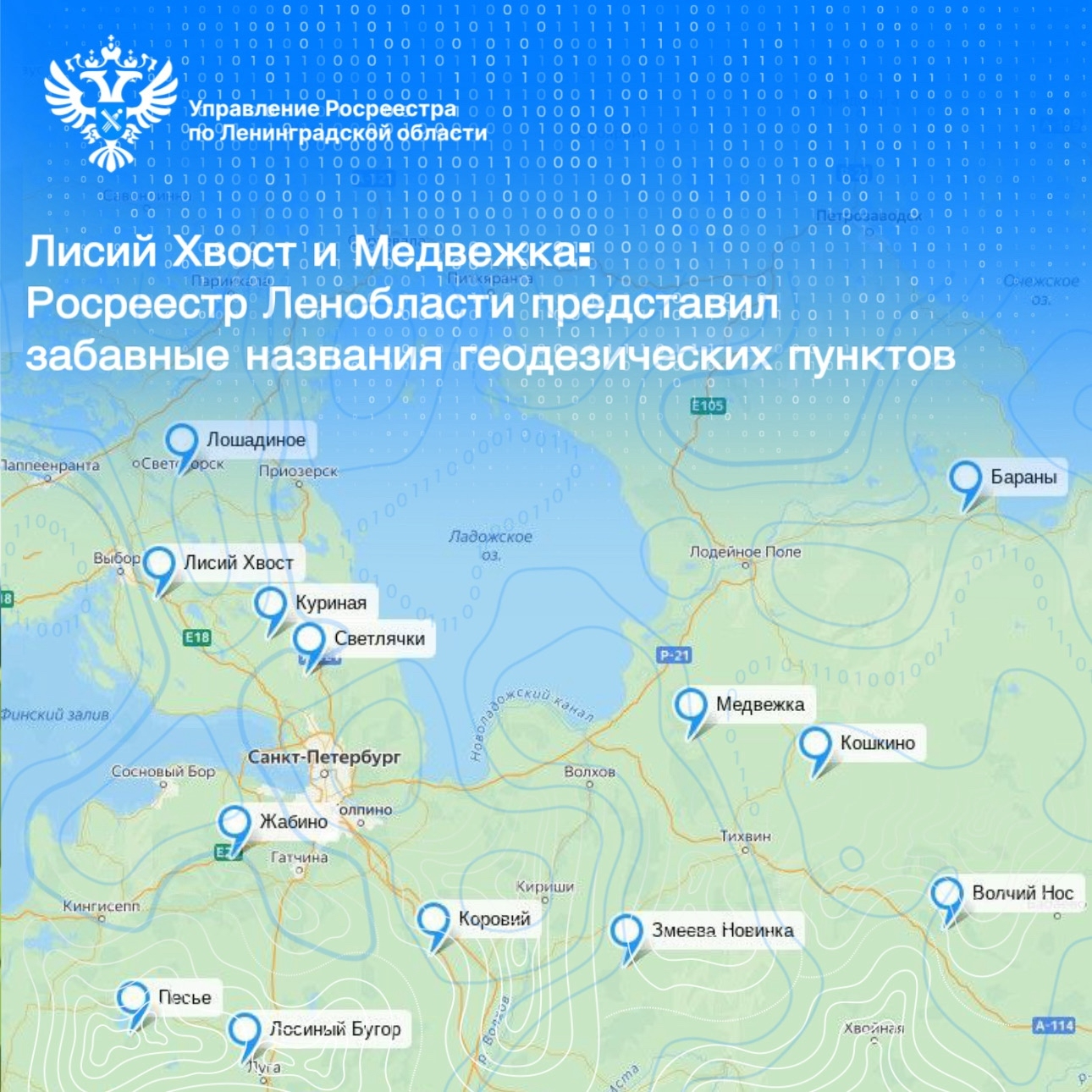 Многие топонимы связаны с животными 47 региона, подчёркивая богатство местной фауны. Начальник отдела геодезии и картографии Алексей Кольцов отметил, что несмотря на юмор в названиях, пункты важны для точных измерений геодезистов, картографов и кадастровых инженеров.