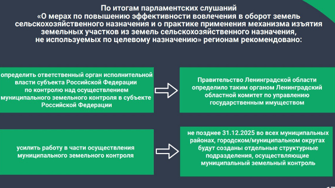 Как сообщил губернатор Ленобласти Александр Дрозденко, заработали новые федеральные законы, инициируемые 47 регионом. С их помощью можно будет изымать заброшенные участки, контролировать целевое использование земли, а также получить больше полномочий для борьбы с борщевиком.