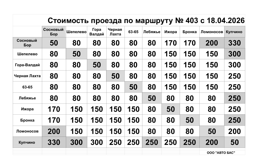 С 18 апреля маршрут № 403 "Сосновый Бор – Санкт-Петербург" изменит схему движения и расписание