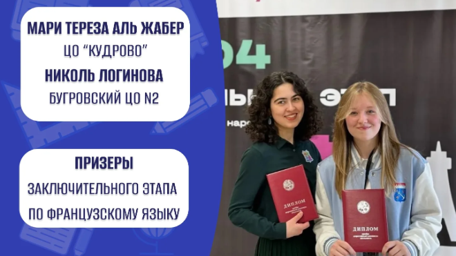 В финале олимпиады призовые места заняли Николь Логинова из Бугровского центра образования №2 и Мари Тереза Аль Жабер из центра образования "Кудрово". Соревнование проходило в формате письменного и устного туров, где участникам нужно было показать знание языка и умение быстро и точно реагировать в разных коммуникативных ситуациях.