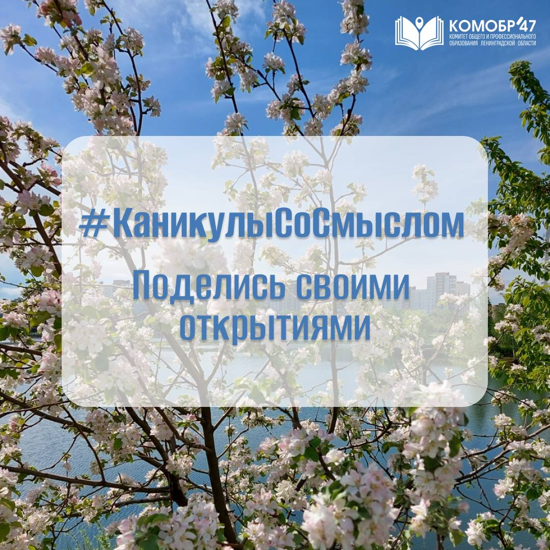 Комитет образования Ленинградской области предлагает учащимся делиться впечатлениями о проведенном отдыхе: рассказывать о прочитанных книгах, посещенных музеях, новых хобби или полезных делах. Свои короткие отзывы, фото, видео или истории можно размещать в соцсетях с хештегом #КаникулыСоСмыслом. Авторы лучших публикаций получат призы.