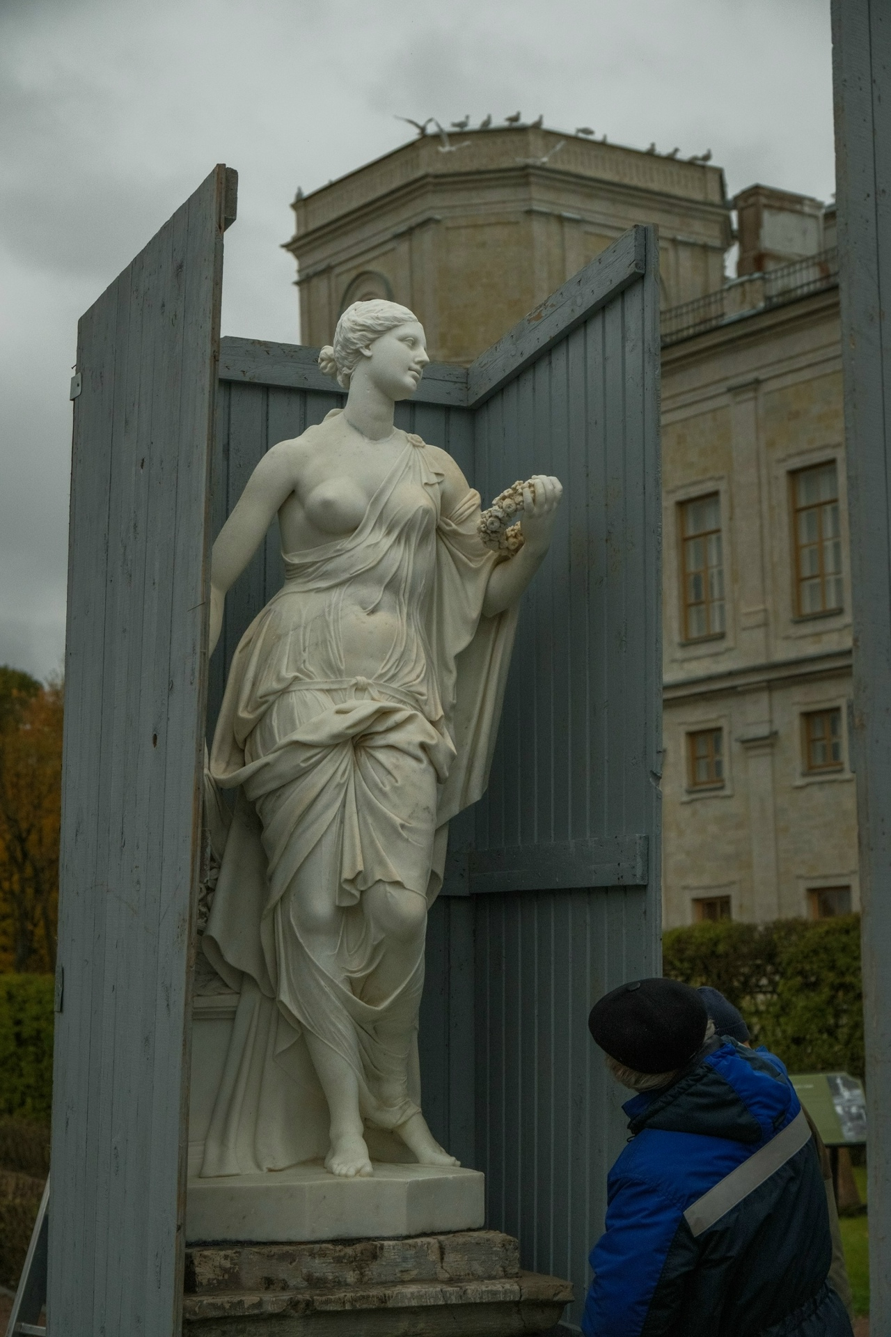 Скульптуры Дворцового парка в Гатчине отправили "на зимовку"