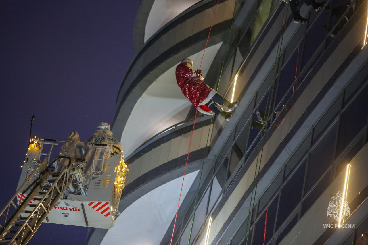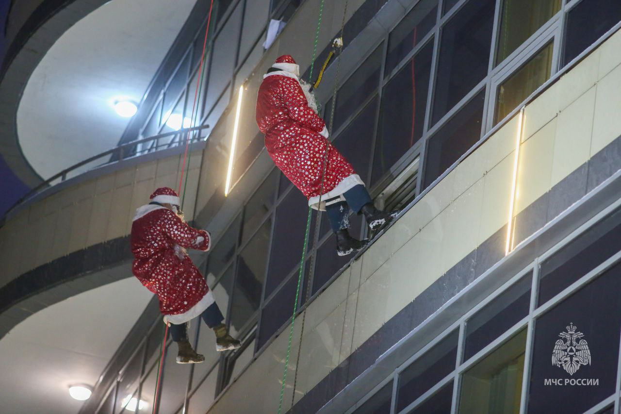 В НМИЦ имени В.А. Алмазова спасатели МЧС Петербурга подарили новогоднее настроение детям и их родителям, которые встретят праздник в больнице. Бойцы спецчасти им. А.П. Кудряшова переоделись в костюмы Дедов Морозов и спустились с крыши здания, чтобы поприветствовать маленьких пациентов через окна.