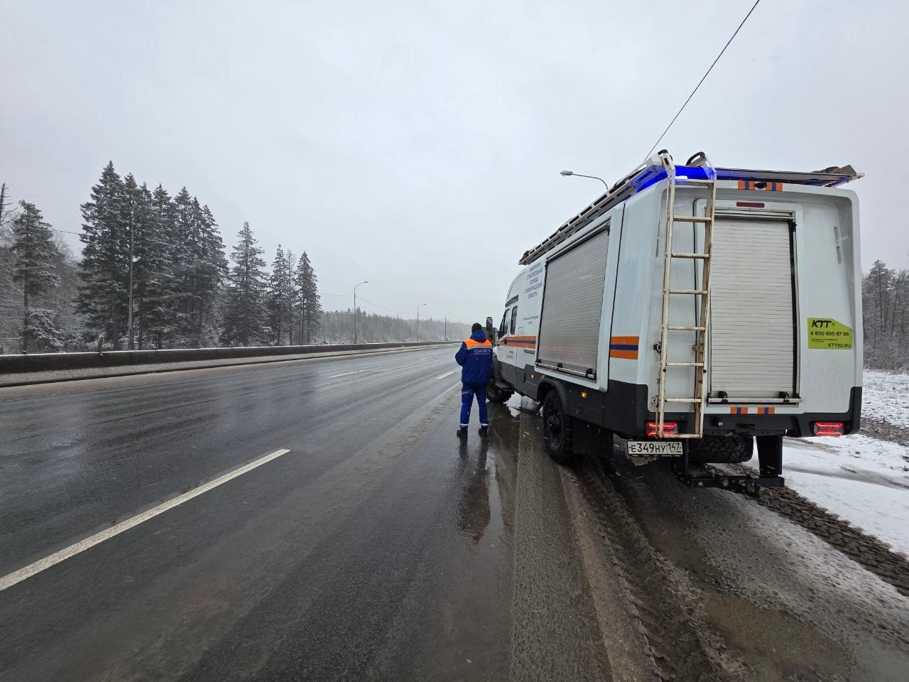 В Ленинградской области испортилась погода. Сотрудники Аварийно-спасательной службы проверили опасные участки на трассах "Кола", "Сортавала", "Россия" и "Нева".