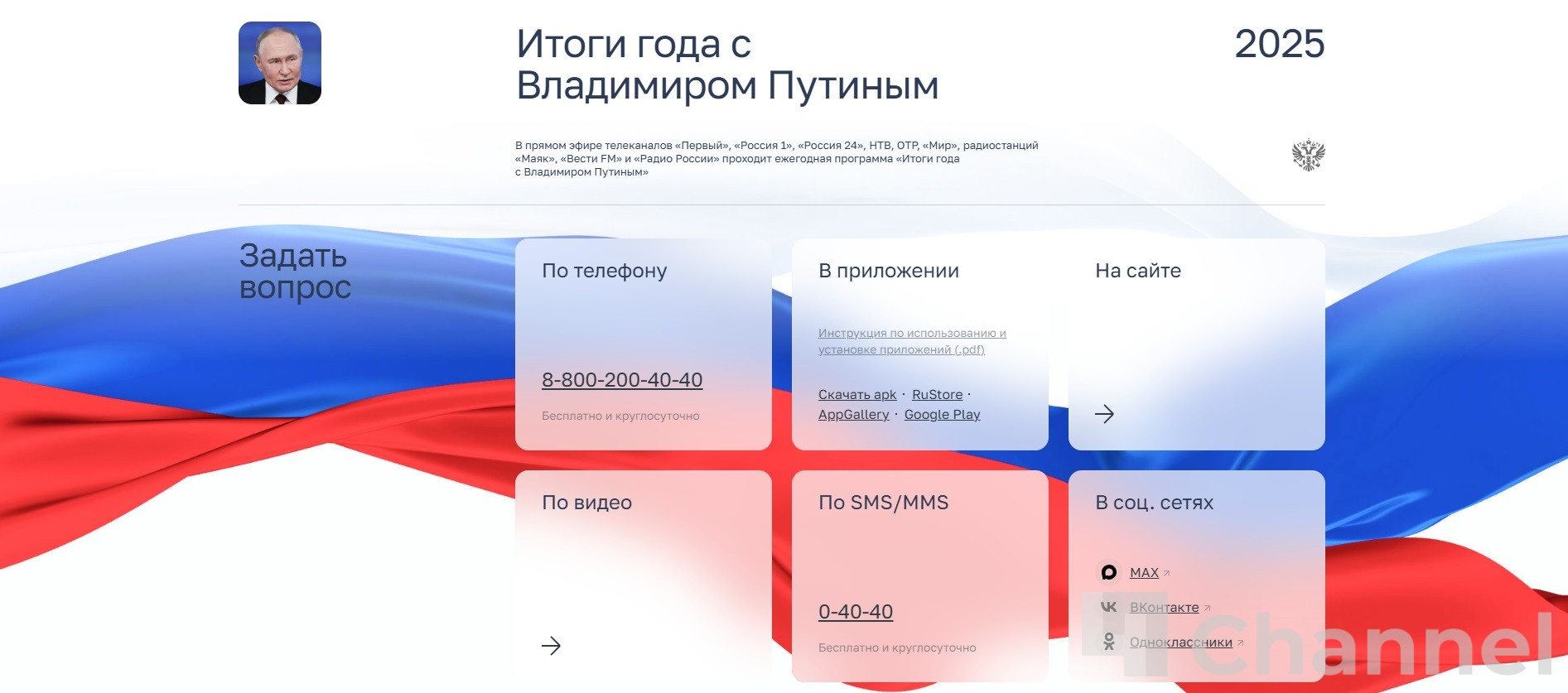 Текстовые и видеосообщения президенту также можно оставить во "ВКонтакте" и "Одноклассниках" в официальных группах vk.com/moskvaputinu и ok.ru/moskvaputinu, а ещё — через чат-бот в мессенджере MAX по ссылке max.ru/moskvaputinu.