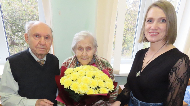 Труженице вручили поздравительные письма от президента России Владимира Путина и губернатора Ленинградской области Александра Дрозденко. Также Клавдии Ефимовне подарили цветы и памятные подарки.
