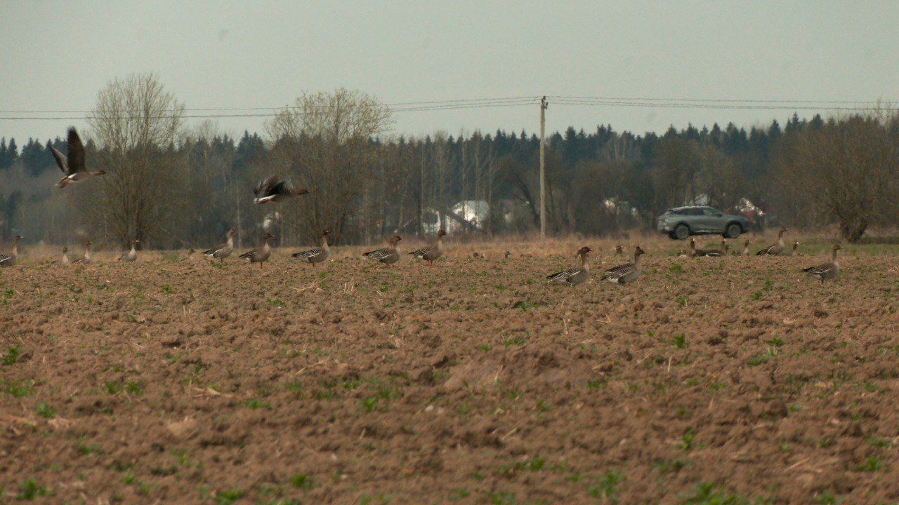 Через Ленинградскую область продолжается массовый весенний пролет птиц. В Волосовском районе биологу и автору канала «Каждой твари по паре» Павлу Глазкову посчастливилось наблюдать одновременно несколько тысяч гусей.