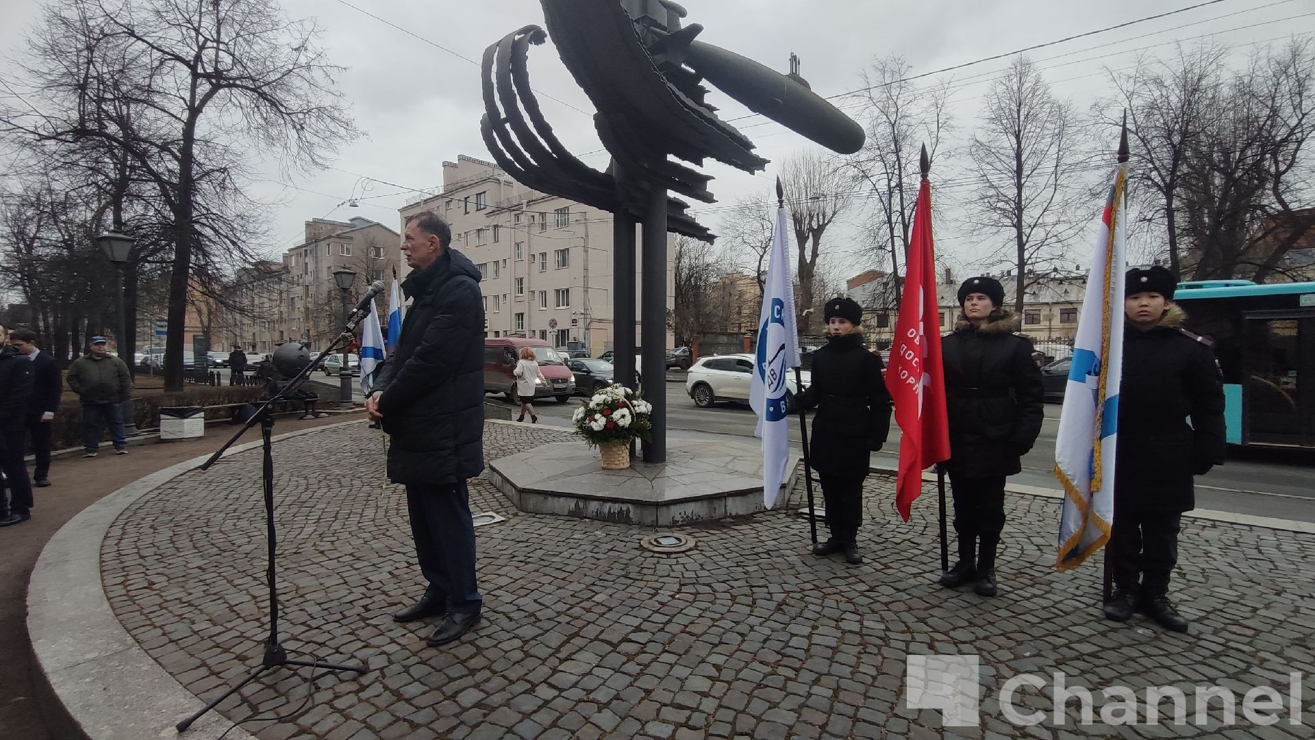 У Адмиралтейских верфей прошел митинг и возложение цветов к памятнику "100 лет подводным силам России"