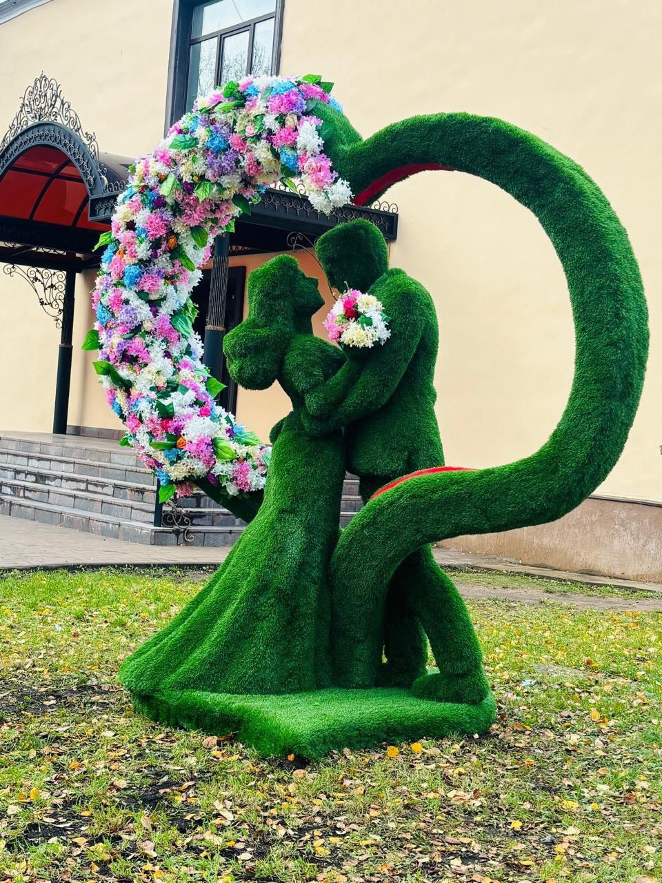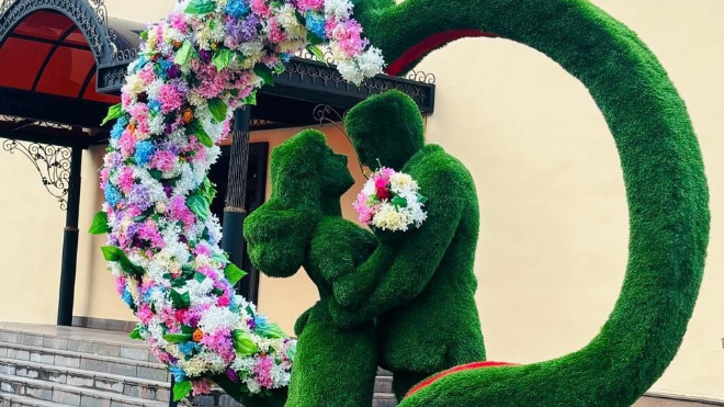 В Бокситогорске установили арт-объект для молодоженов. Прямо у здания городского ЗАГСа появилась скульптура влюбленной пары.
