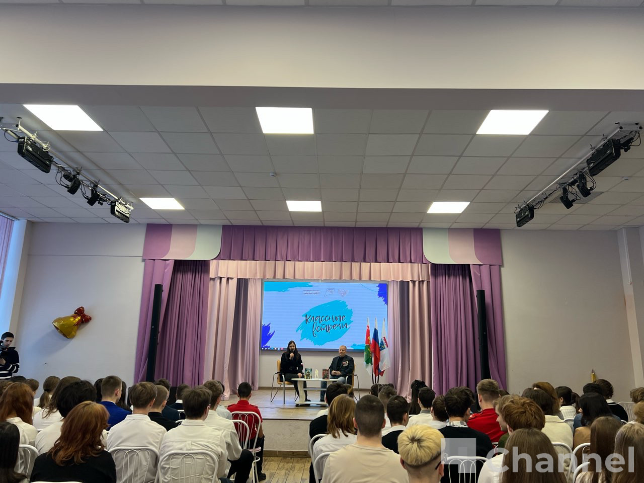 Школьники прослушали лекцию, посвященную истории России, а также смогли пообщаться с ветераном боевых действий. Встреча проходила в формате «вопрос-ответ».
