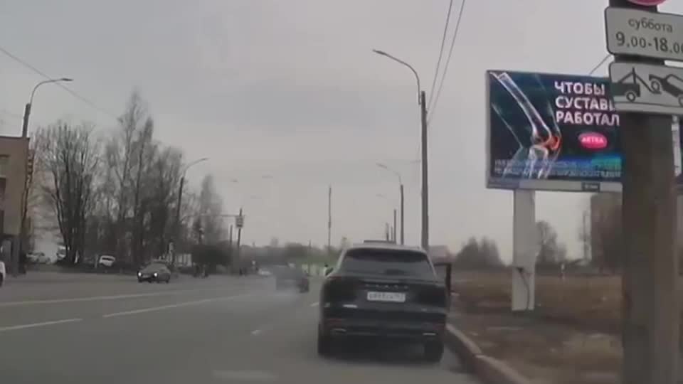 Спустя пять минут у дома №115 по проспекту Стачек гонщик попытался проехать на красный сигнал светофора и врезался в «Хендай Туксон», заканчивающий поворот налево. Никто не пострадал, а преступник и его пассажирка попытались скрыться.