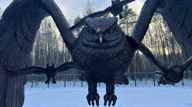 Уникальную скульптуру "Сова и совята" установили в школе в Новоселье