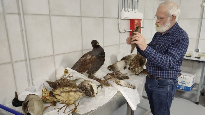 Заведующий мастерской реставрации естественно-исторических предметов Юрий Стариков осмотрел чучела диких птиц и энтомологическую коллекцию. Часть экспонатов также ждет реставрация в 2026 году.