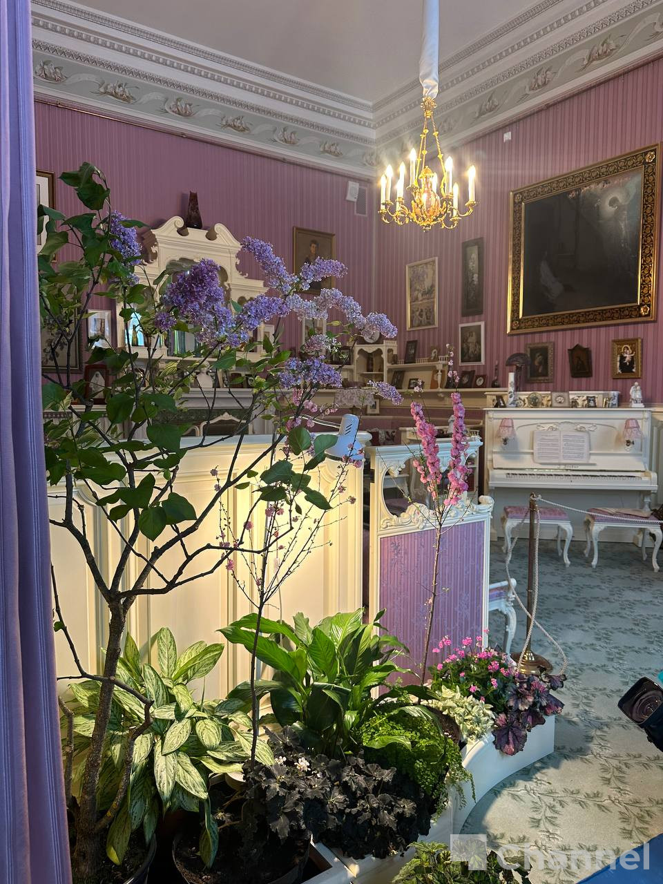 Ранее живые цветы в интерьерах Александровского дворца были постоянным украшением. После реставрации 2021 года их вновь начали выставлять. Цветущую сирень можно будет увидеть в залах до апреля, после чего ее место займут другие сезонные растения.