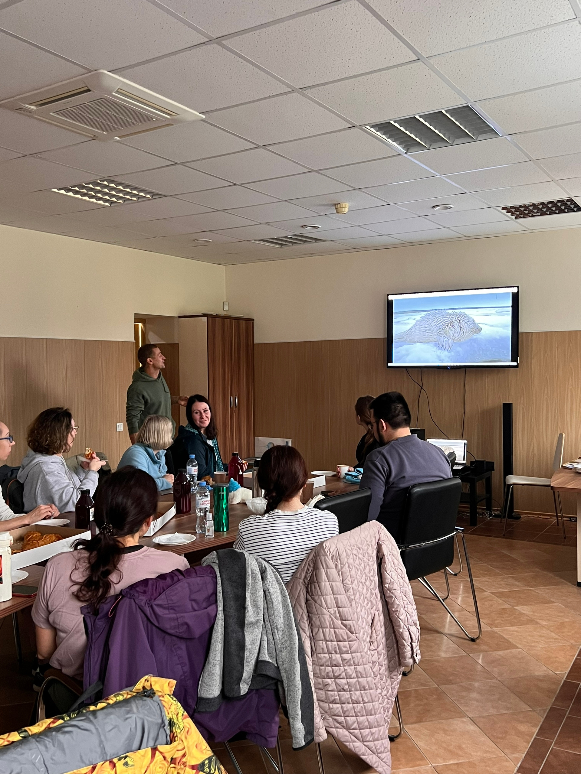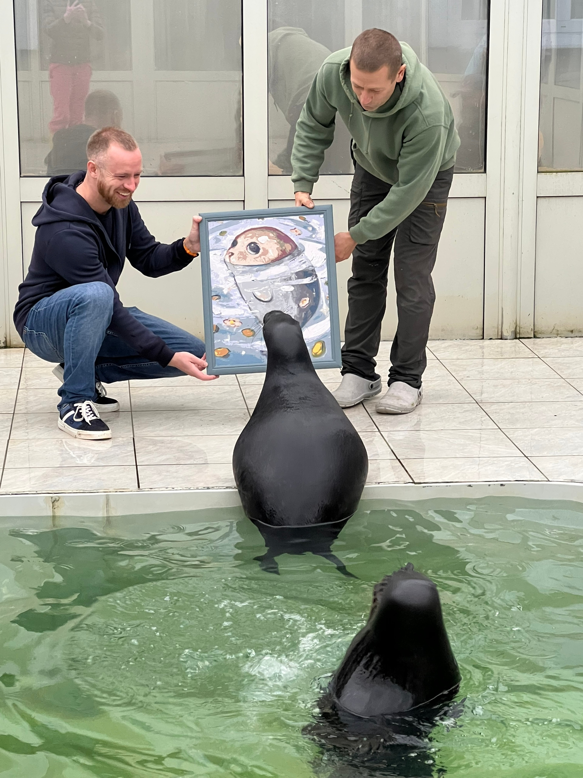 Художница Ольга из Москвы передала в Центр изучения и сохранения морских млекопитающих картину, которую с интересом осмотрели Крошик и Шлиссик. Субботник завершился просмотром фильма «Краткое пособие по воспитанию тюленей», рассказывающего о работе уникального «Детского сада» для Нерп.