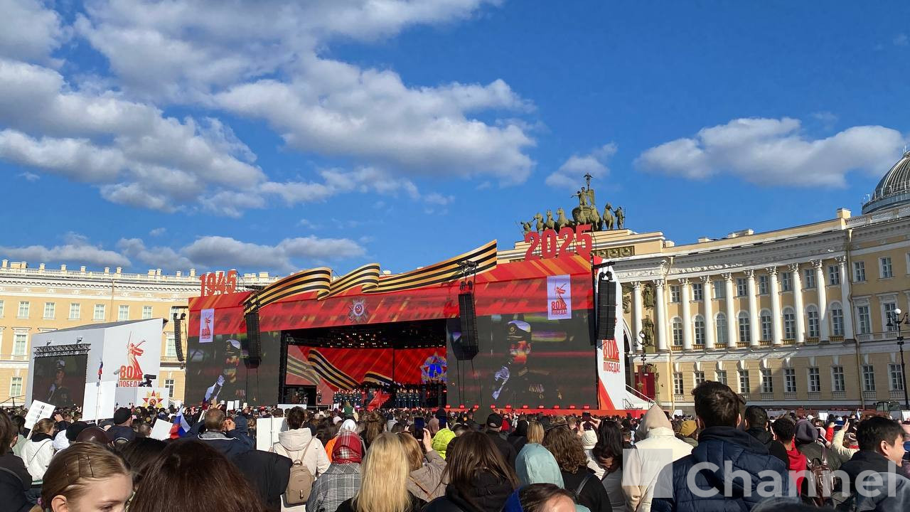 На Дворцовой площади в Петербурге стартовал праздничный концерт в честь 80-летия Победы в Великой Отечественной войне под девизом "От Победы к Победам". Программу открыл музыкант Александр Розенбаум.
