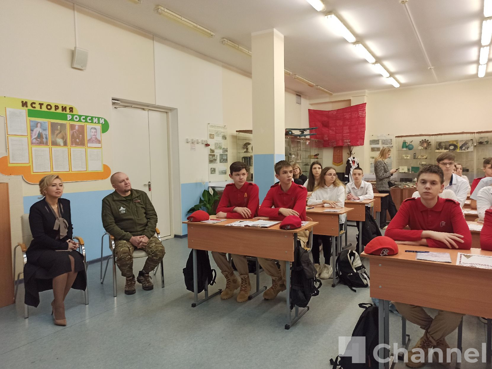 Часть учеников является членами юнармейского отряда имени героя России Александра Ефимова, погибшего в зоне СВО в 2022 году. В школьном музее хранятся его личные вещи, а ученики поддерживают связь с его близкими. Домашним заданием стало написание писем солдатам на фронт с новогодними поздравлениями.