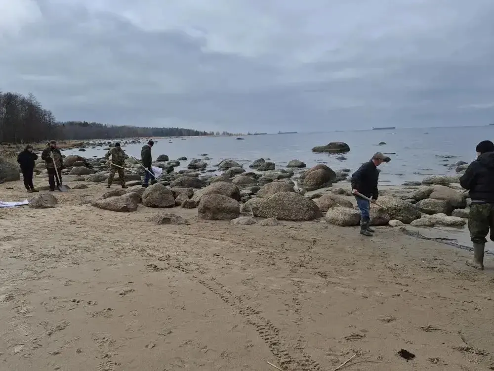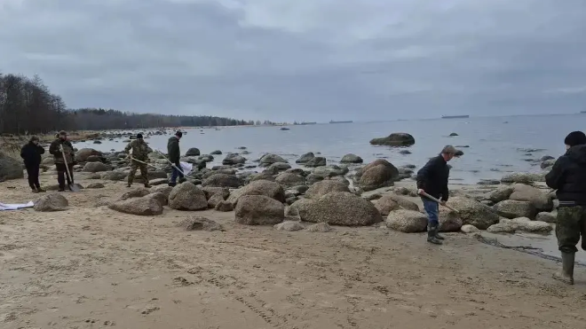 В деревне Логи ликвидируют загрязнение берега Финского залива