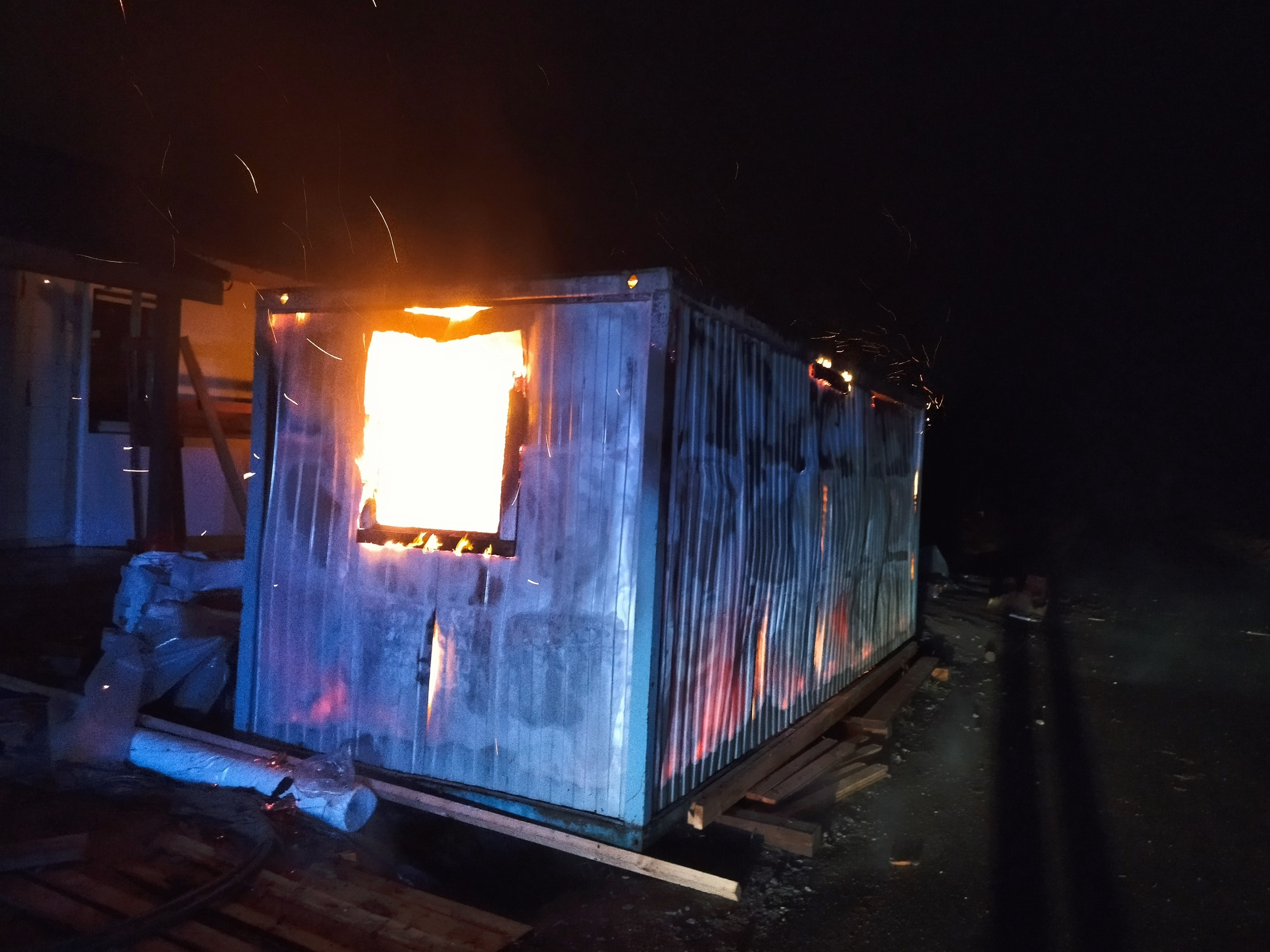 В деревне Вартемяги тушили бушующий внутри бытовки пожар