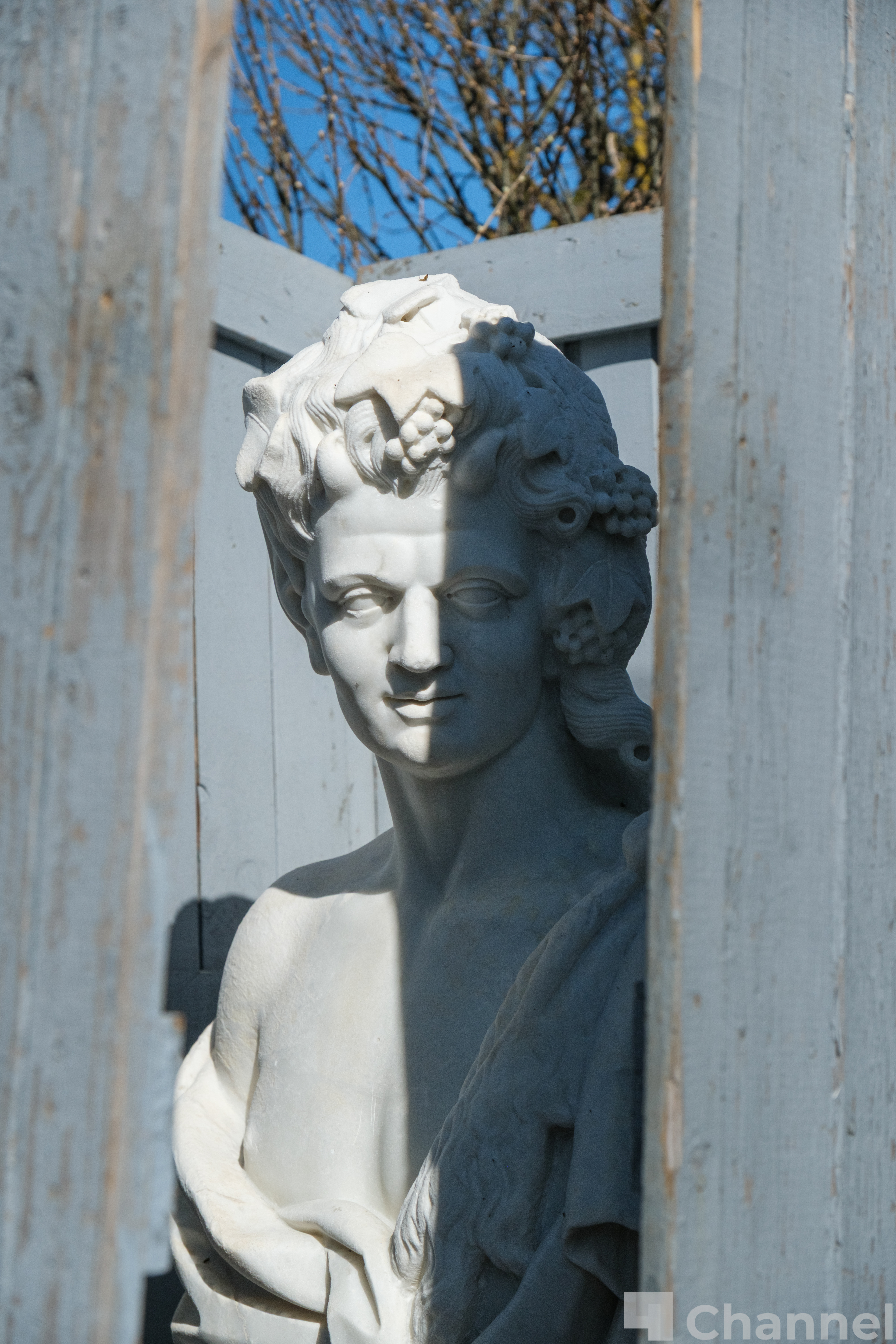 Статуи, созданные итальянскими мастерами в XVIII веке, на зиму традиционно закрывают специальными конструкциями, чтобы уберечь их от влаги и перепадов температуры. Среди них — образы мифологических героев: Амазонки, Сатира, Марса, Афины, Флоры и других персонажей.