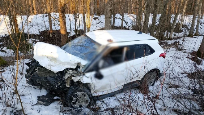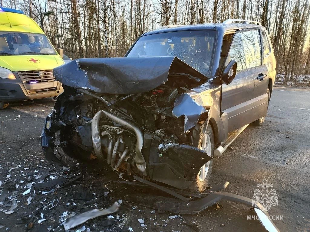 В Гатчинском округе Ленинградской области на трассе 41К-101 у поворота в деревню Малое Верево, произошло лобовое столкновение "Хендай Крета" и "Митсубиси Паджеро".