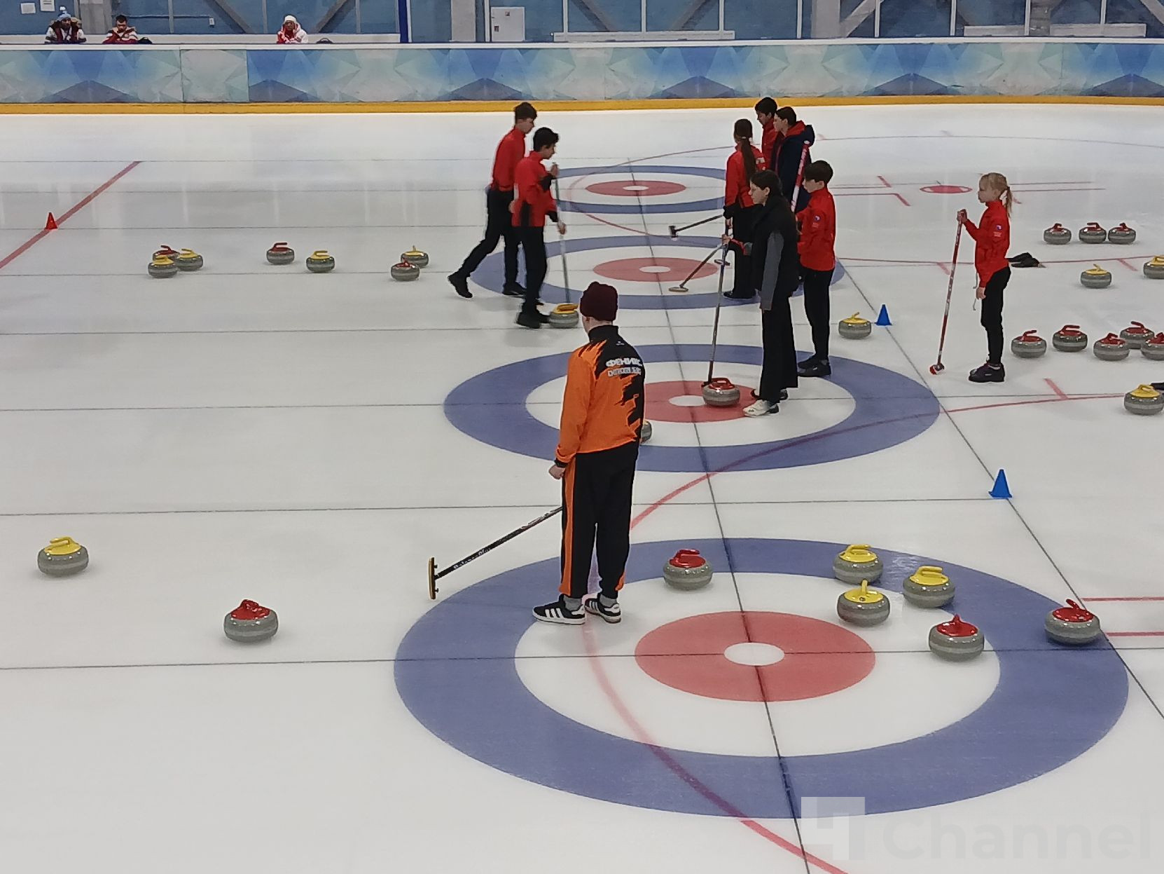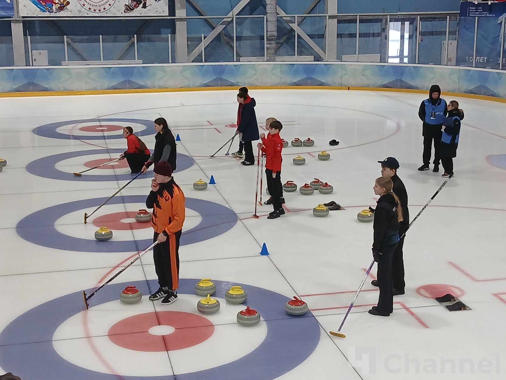 В Колтушах прошёл первый соревновательный день турнира по кёрлингу в рамках первых спортивных игр святого благоверного Александра Невского. Перед началом матчей команды провели разминку.