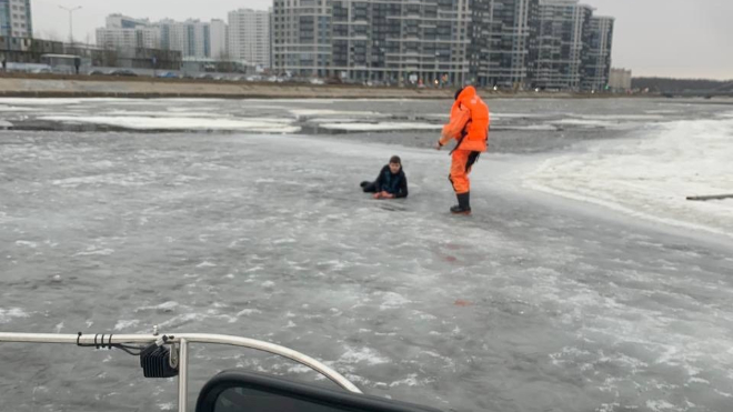 Инцидент произошел около трех часов дня. По словам очевидцев, под лед провалился человек.
