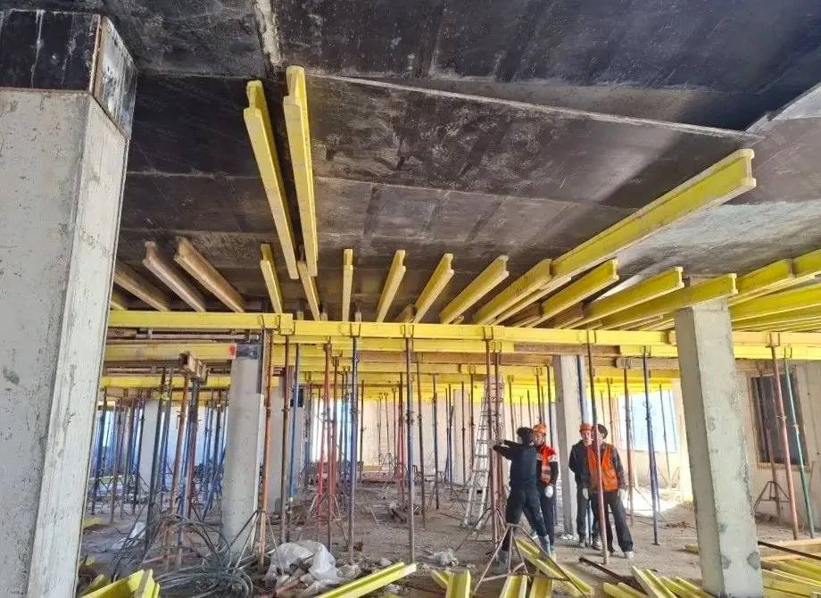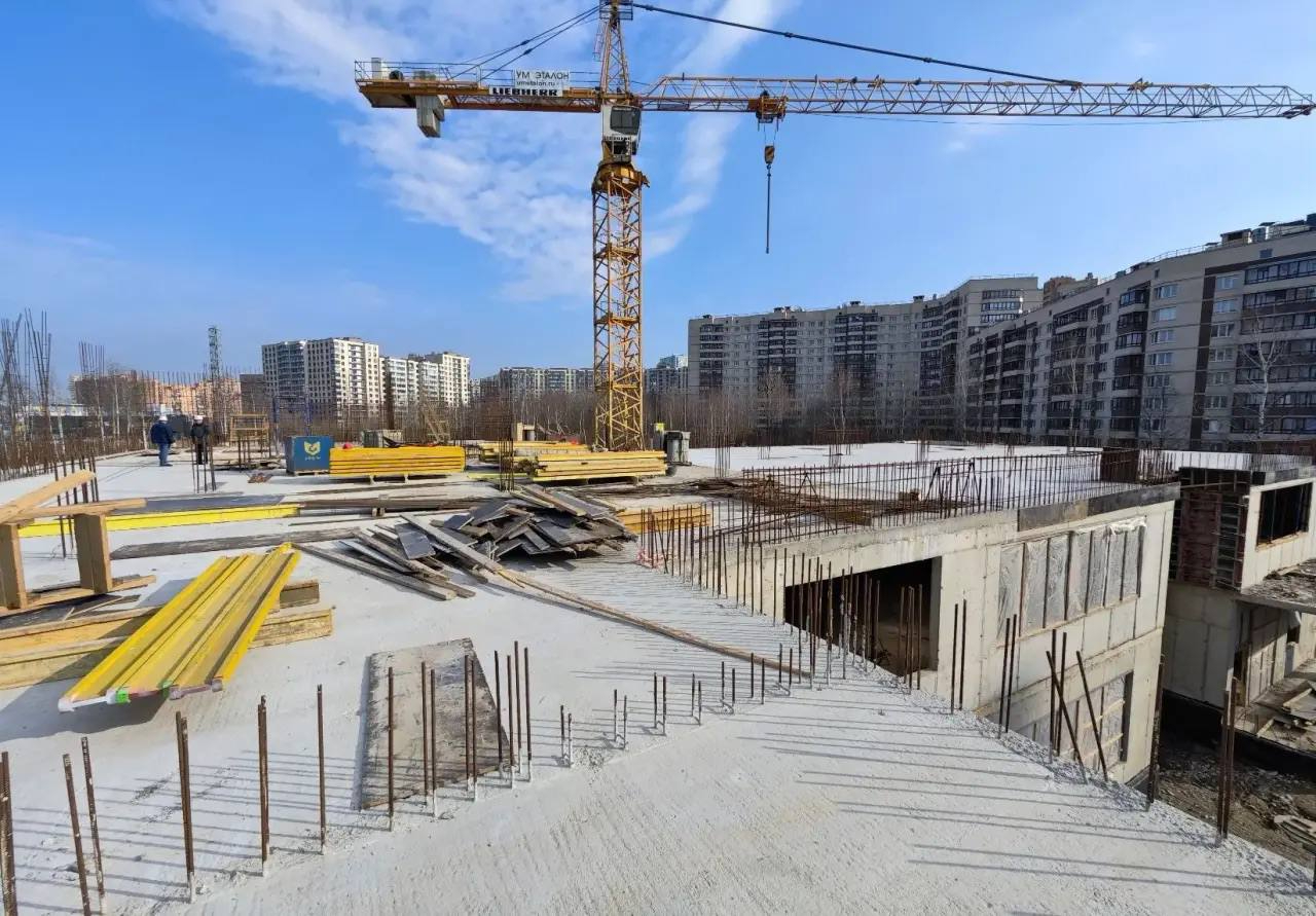 На объекте также залиты стены, колонны и перекрытия, утеплены наружные стены подвала гидроизоляцией и мембраной, забетонированы лестничные марши. Параллельно продолжается возведение внутренних перегородок: кирпичных в техпомещениях подвала и газобетонных на первом этаже.