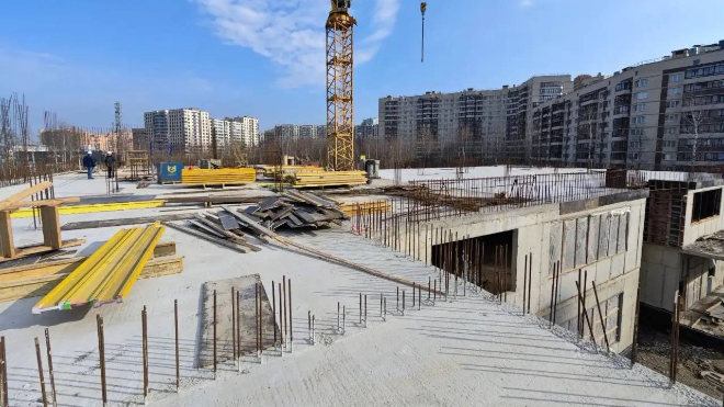 На Центральной улице в Кудрово (Всеволожский район Ленобласти) полным ходом идет возведение детского сада на 220 мест. Строители уже завершили работу над плитой фундамента, обустроили подвал, первый и второй этажи из четырех.