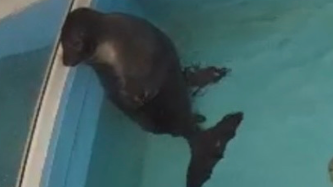 В новом коллективе светлая нерпа сразу же навела порядок. Она выгнала мелюзгу из самого большого бассейна и единолично им пользовалась, пресекая любые попытки сунуть в него нос.