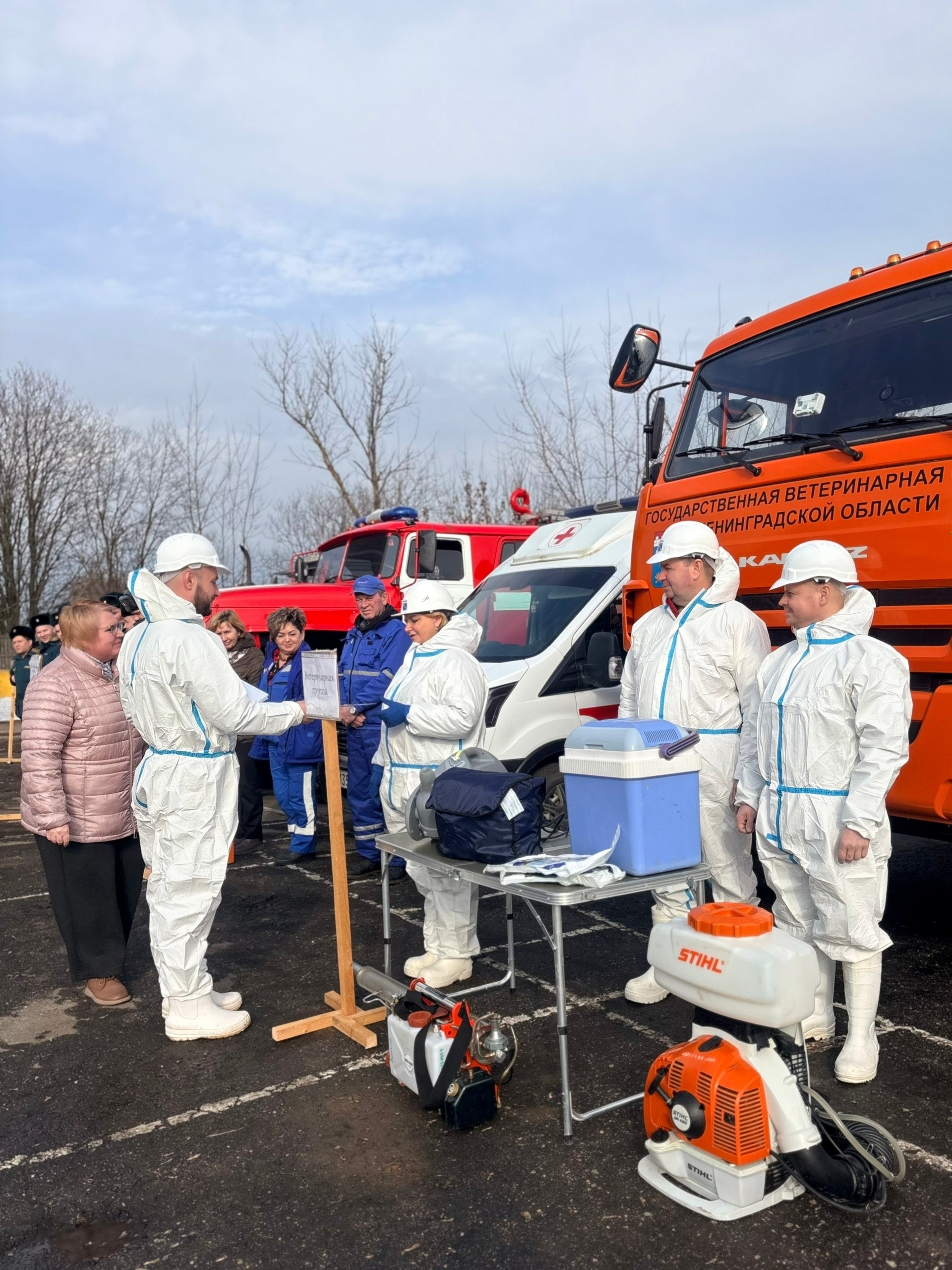 Учения проходят в несколько этапов. Сначала проверяют готовность районного мобильного отряда: оценивают состав, экипировку, оснащение и состояние техники. Затем проводится рабочее совещание по условной ситуации — например, вспышке инфекции на животноводческом объекте. В этот раз отрабатывали сценарий с ящуром. Участники обсуждают, как локализовать очаг и не допустить распространения болезни, проверяют, все ли службы подключены к работе и насколько слаженно они взаимодействуют.