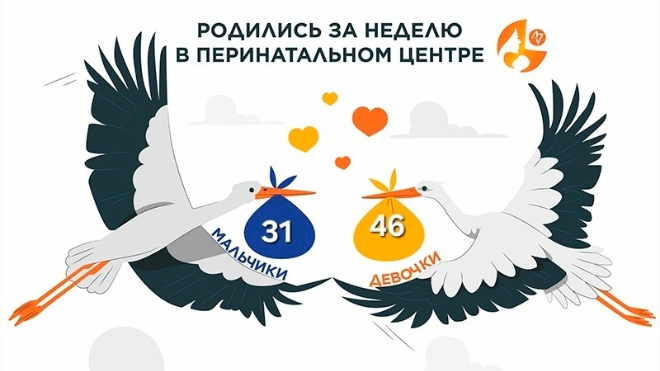 В Ленинградском областном перинатальном центре с 18 по 25 февраля родились 77 детей — 31 мальчик и 46 девочек. Медики поздравили мам и их семьи с пополнением.